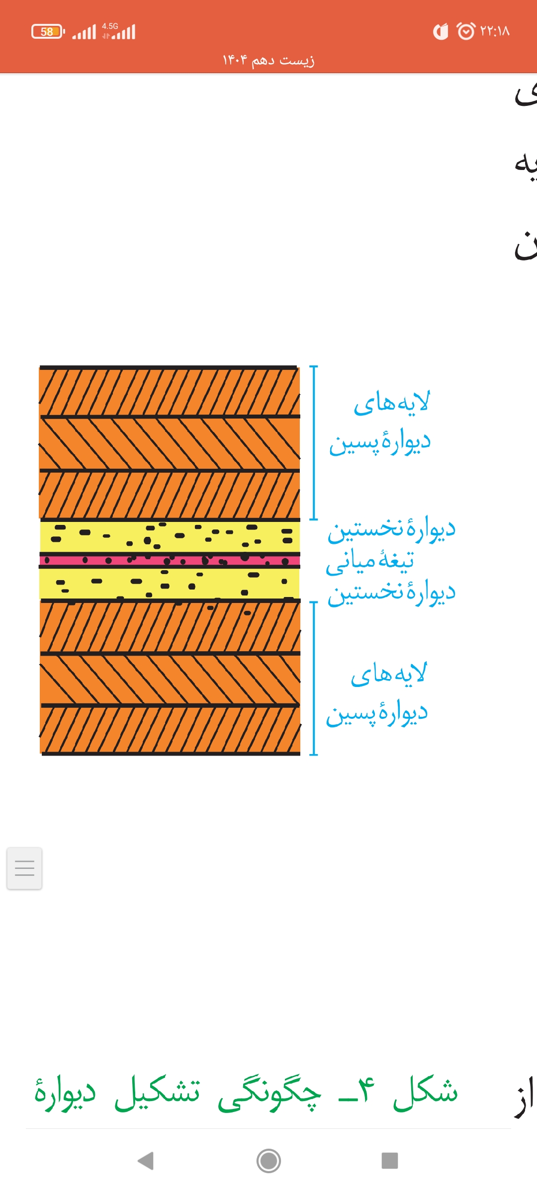 عرض کردم که با رشد دیواره پسین از حجم پروتوپلاست کم میشه و به حجم دیواره اضافه میشه پس میشه گفت حجم کلی ثابت میمونه و اینکه طبق شکل کتاب درسی، تیغه میانی رو نازکتر از دیواره نخستین بگیرید
