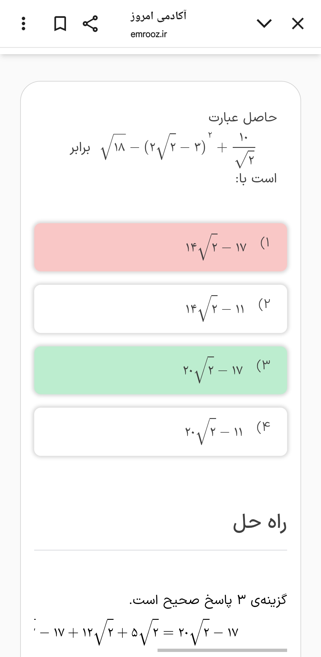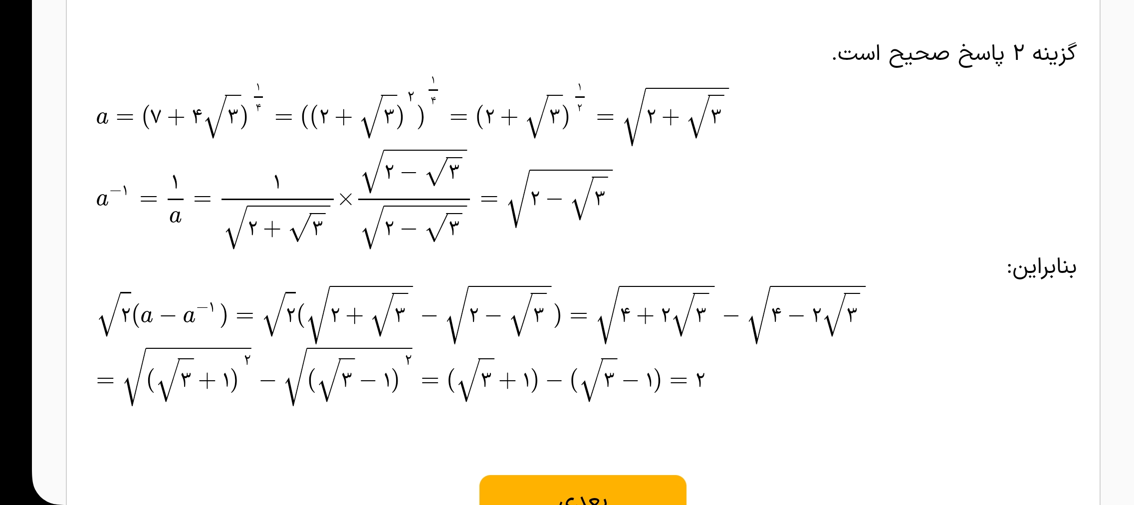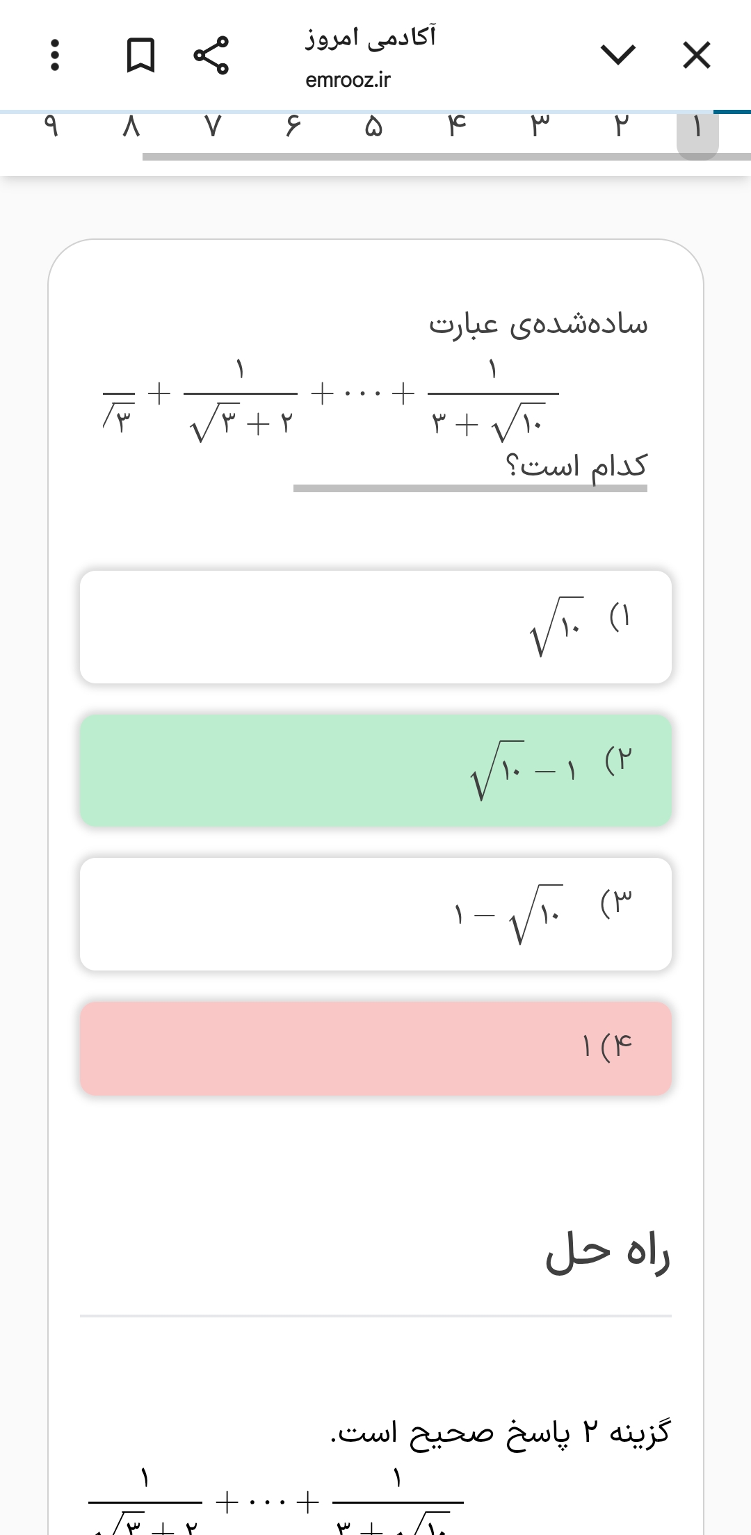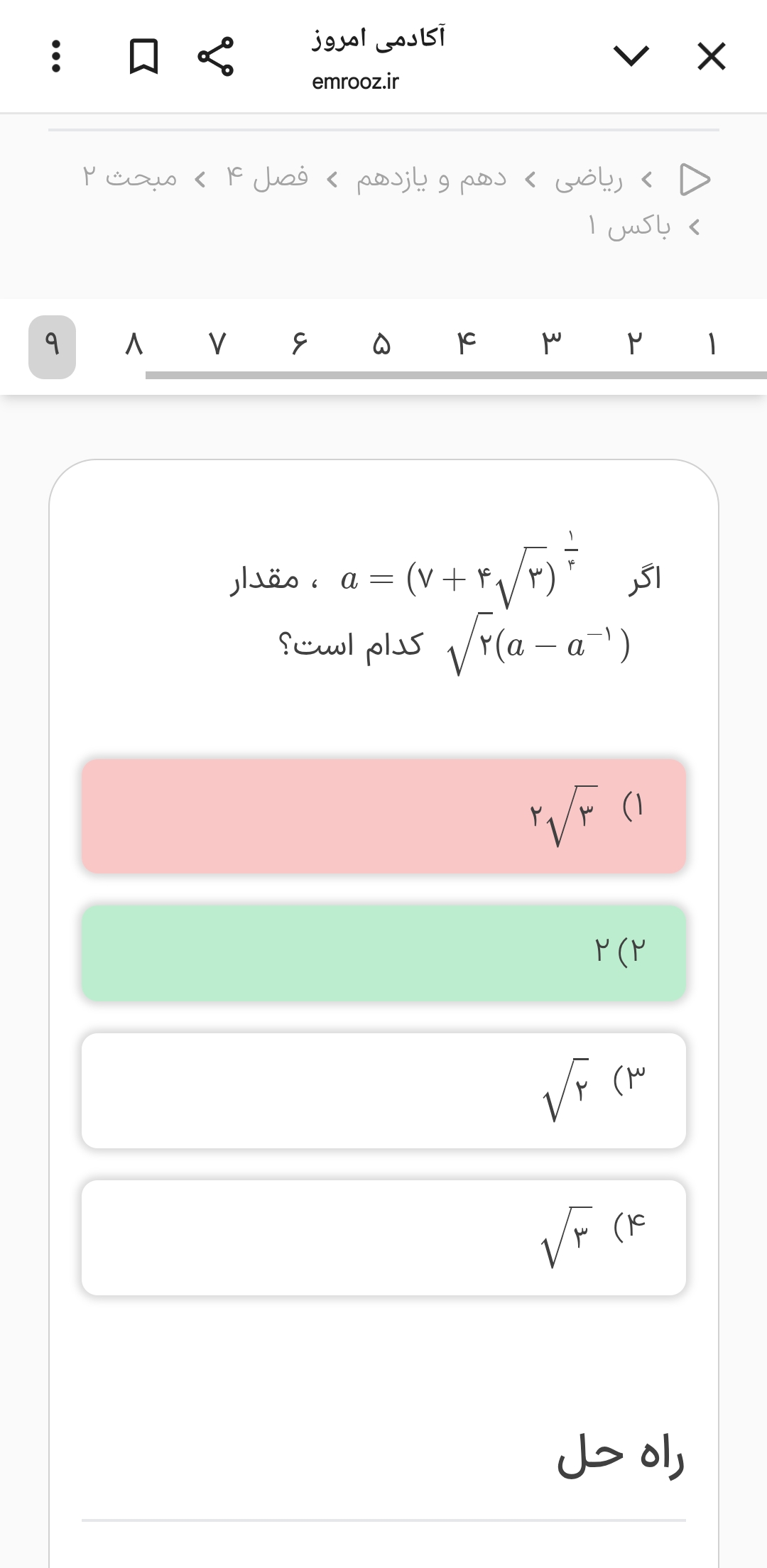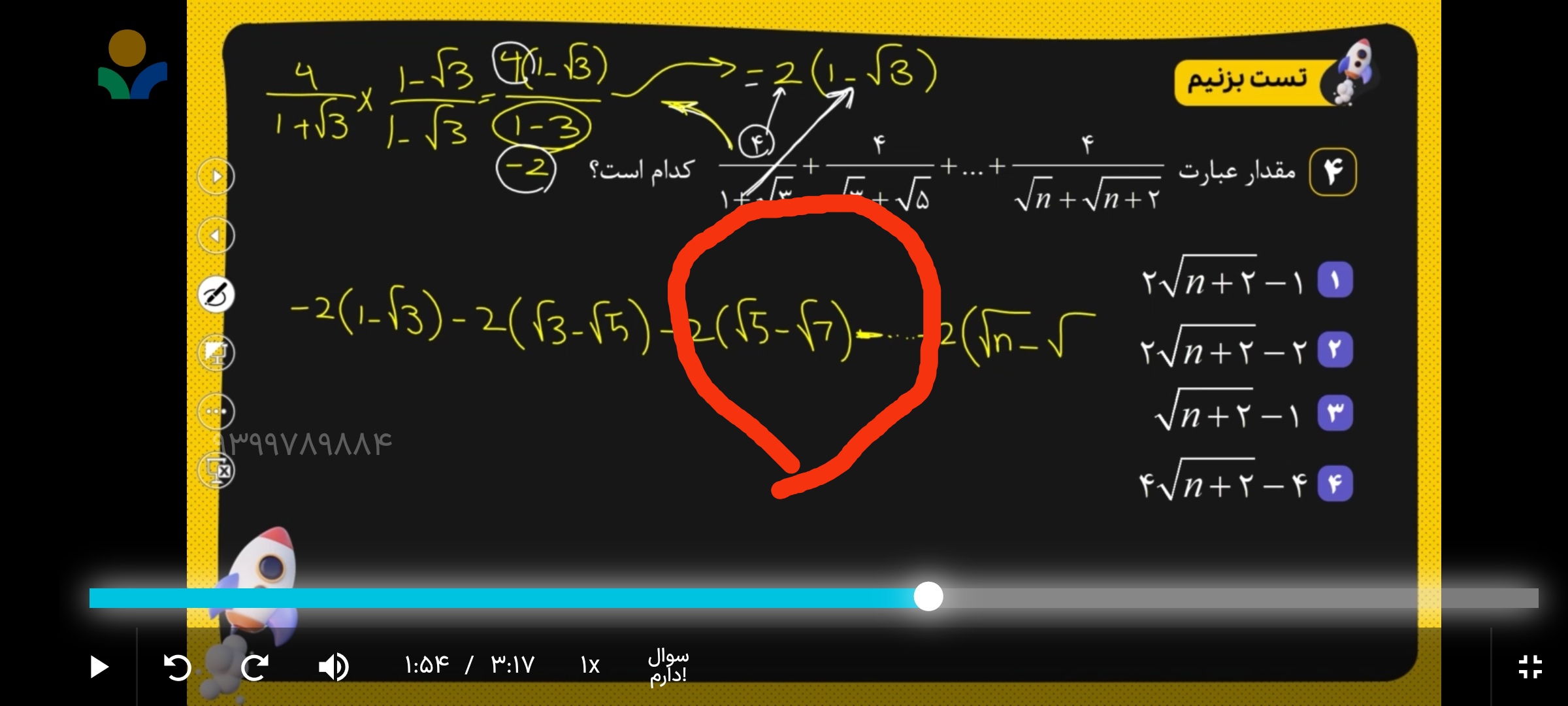 میشه این سوالو توضیح بدین تا قسمت اینک باید مزدوج بزنمو میتونه شدم ولی چرا باید. گزینه ۲ شه؟