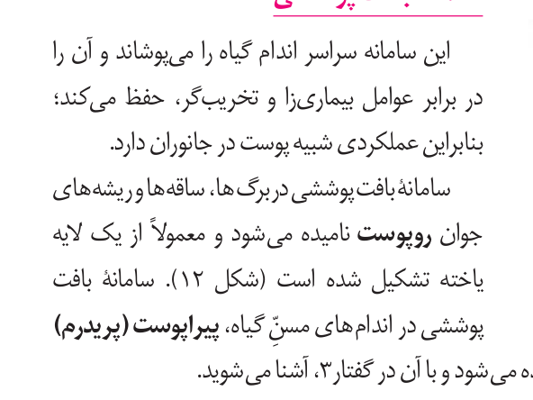 آیا روپوست سراسر اندام های گیاه رو میپوشونه ؟ پوستک چطور ؟