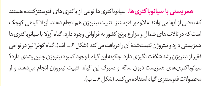 سلام ببخشید در گزینه 4 طبق متن کتاب نگفته که این سیانو باکتری ها وریزوبیوم ها نیتروژن جو رو به چه چیزی تبدیل می کنند ولی استاد گفتند گه به امونیوم ولی اگه تست شمارشی باشه مثلا بگه که سیانو باکتری ها نیتروژن جورو به امونیوم تبدیل می کنند اون وقت درست بگیریم؟؟