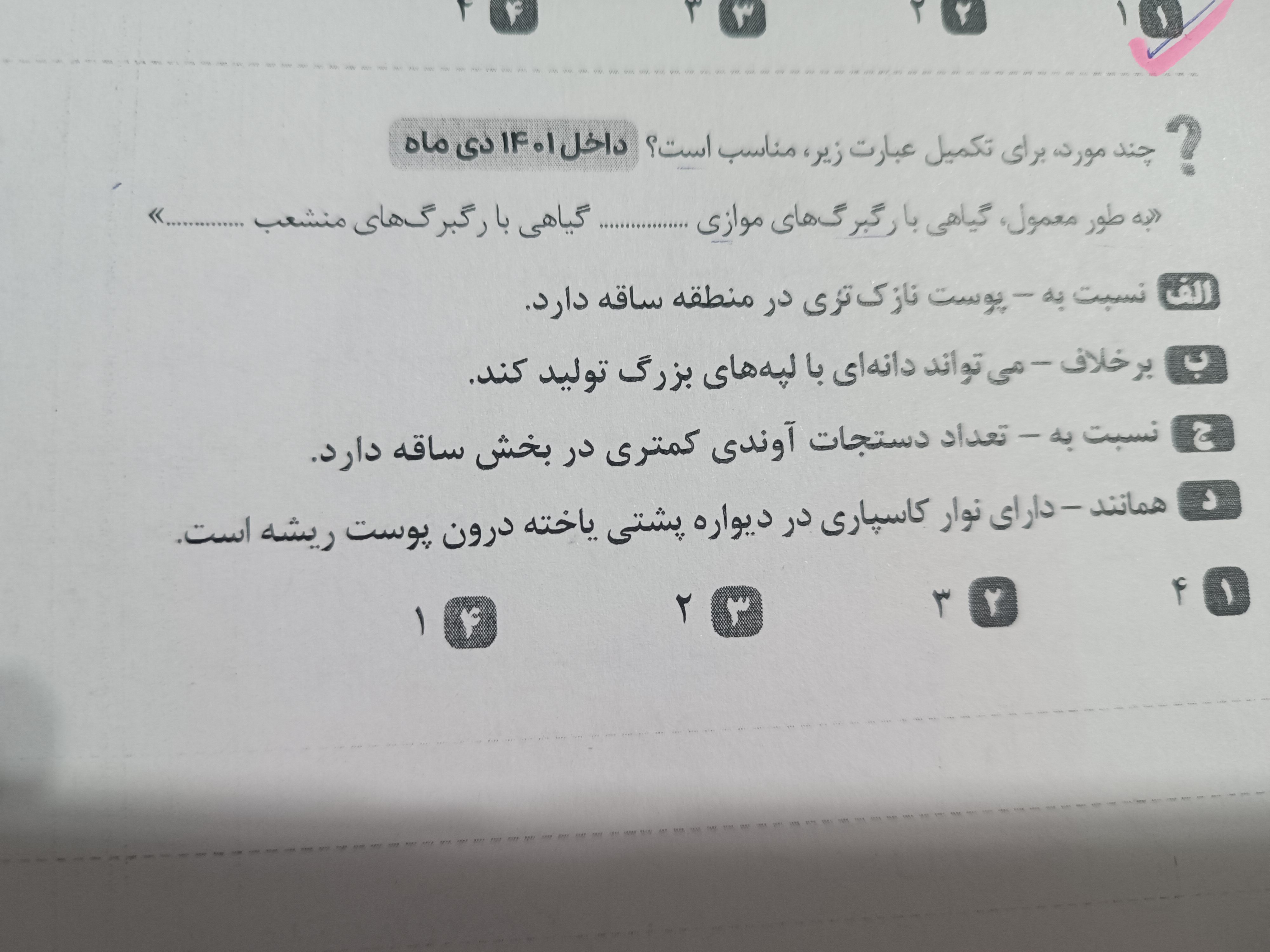 گزینه ۴ میشه قسمت اول رو توضیح بدید گفته برای تعیین سرعت و ترکیب شیرهای که باعث جابجایی اون میشه یعنی انگار داره میگه شیره خام باعث جابه جایی فشار ریشهای میشه به نظرتون بر عکس نگفته آخه فشار ریشه ای هست که با باعث جابه جایی شیره خام میشه نه شیره خام باعث جابه جایی فشار ریشهای انگار یکم جمله عجیبه😂