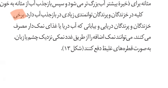 سلام. یعنی خزندگان و پرندگان دریای و بیابانی همشون غدد نمکی ندارن فقط برخیشون دارن.میشه اینجوری نتیجه گرفت ؟