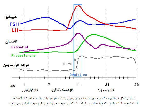 نه حدود روز چهارده یهو زیاد میشه و LH وFSH هم زیاد میشن(بازخوردی مثبت)