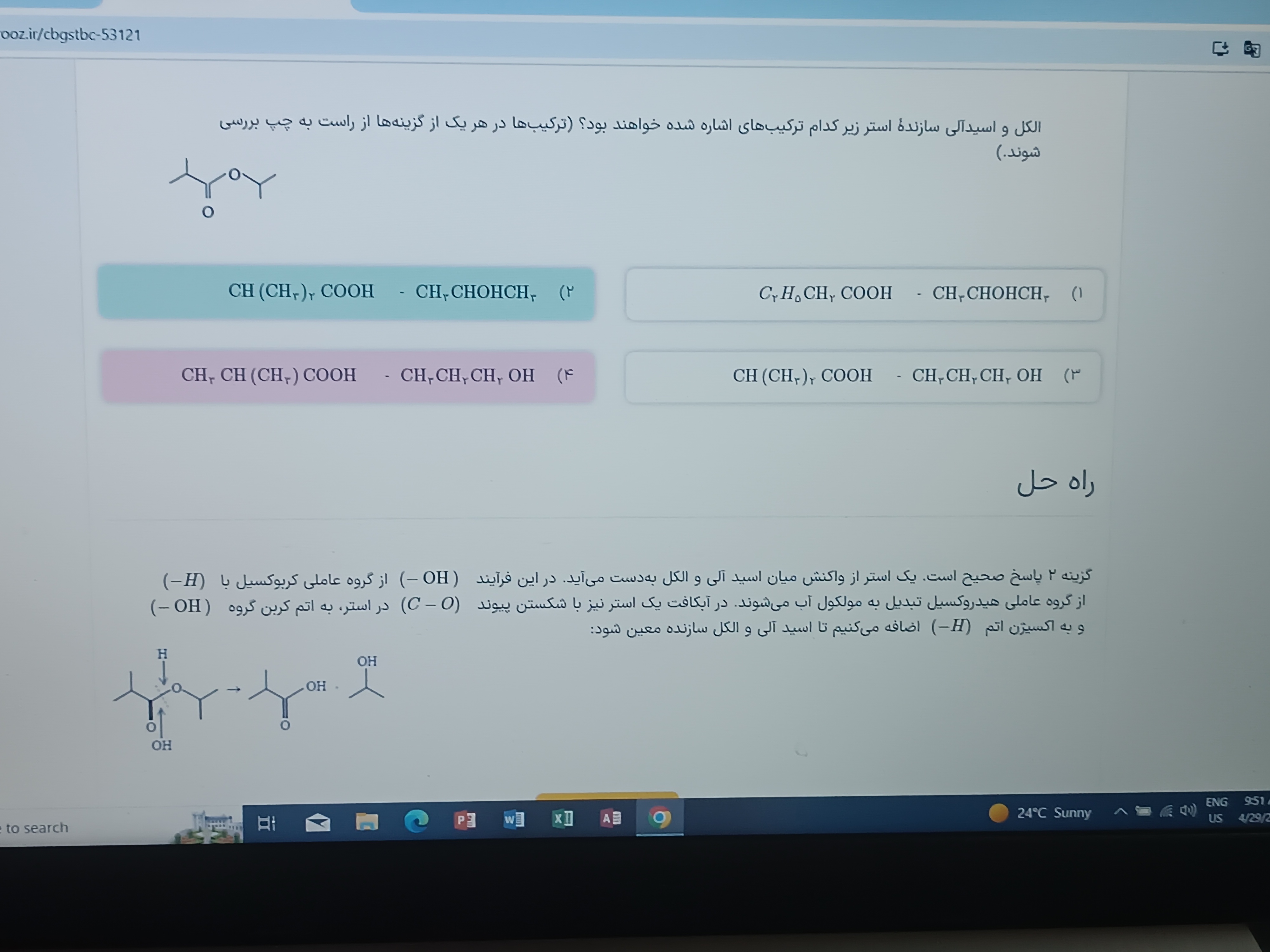 درود در مورد چی یاد گرفتی هرجوری حساب میکنم 19 تا اب ازاد میشه چون یدونه OH از سمت اسید و O از سمت الکل باقی میمونه و اب تشکیل نمیده فک کنم فرمولش این باشه: nاسید دو عاملی و nالکل دو عاملی -----> 2n-1 اب ازاد می کند درسته؟؟!! لطفا پاسخ گو باشین این سوالو چند وقت پیش هم پرسیدم و کسی جوابگو نبود