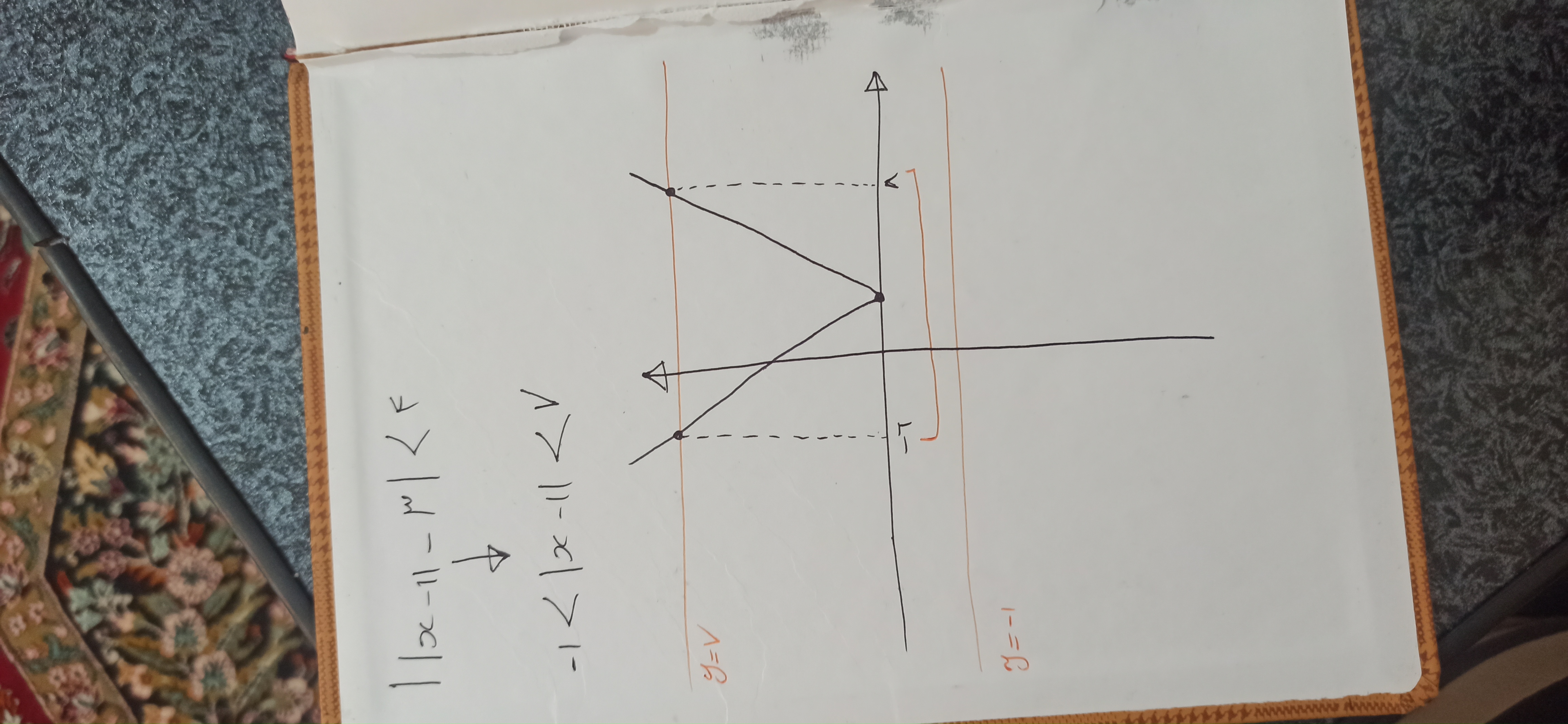 دقت کن که قدر مطلق ایکس منهای یک،همیشه یه عدد بزرگتر مساوی صفره پس همیشه از منفی یک بزرگتره،پس به ازای هر مقدار ایکس،برقراره اون قسمت پایینی و اونجا رو نباید بازه بندی میکردید و جواب میشه بازه منفی شش تا هشت که دوسرش بازه