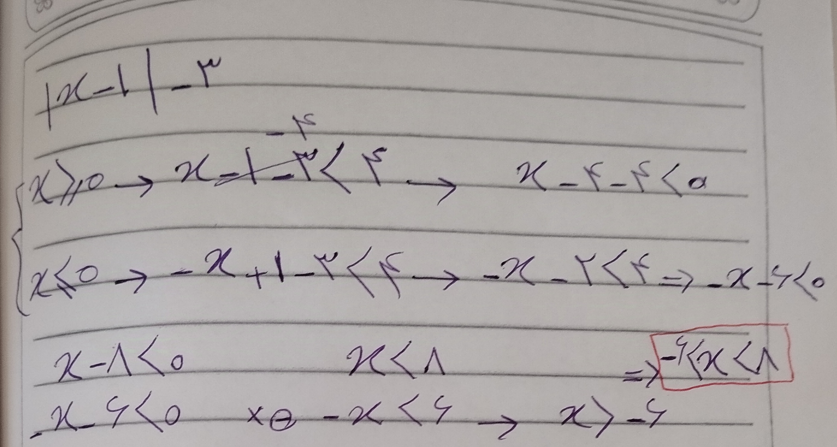 سلام حل نامعادله قدرمطلقیه دراصل میگیم اگ قدرمطلق کوچیکتر از یه عدد باشه بین خود عدد و منفیش قرار میگیره و اگ بزرگتر باشه دو حالت بوجود میاد. بهتره توی همین فصل قسمت حل نامعادلات قدر مطلقی رو ببینی تا متوجه بشی