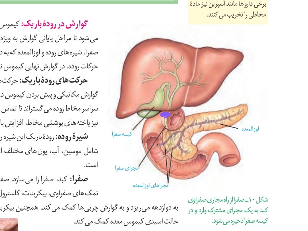 سلام در دقیقه 30 استاد میگن کبد نمیتواند صفرا را وارد دوازدهه کند اما در شکل کتاب کاملا واضح است و من تستی زدم ک صفرا بعد ازتولید وارد مجرای میشود که ب دوازدهه راه دارد و وقتی این مجرا پر شود در کیسه صفرا دخیر میشود کدام باید یاد بگیریم