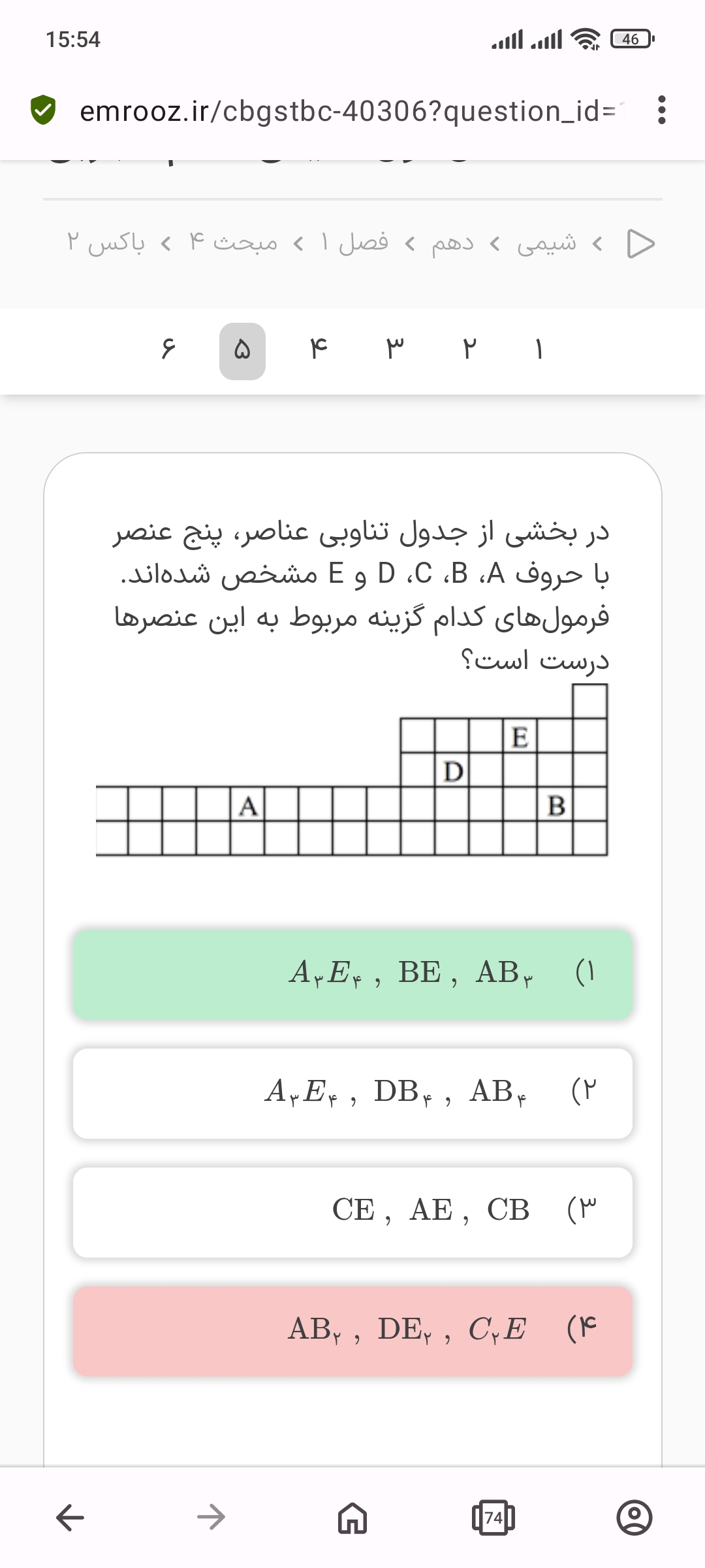 این سوال باید جوابش گزینه ۴ باشه چون هر سه تا ترکیب یونی گزینه ی ۴ وجود دارن و درست هستن ولی تو گزینه ی ۱ دوتا مورد اشتباه وجود داره EB وجود نداره و تو واقعیت EB2 هستش A3E4 هم وجود نداره چون E اکسیژن هست و A آهن، اون وقت چجوری زیروند آهن ۳ شده و این گزینه هم درست گرفته شده؟؟