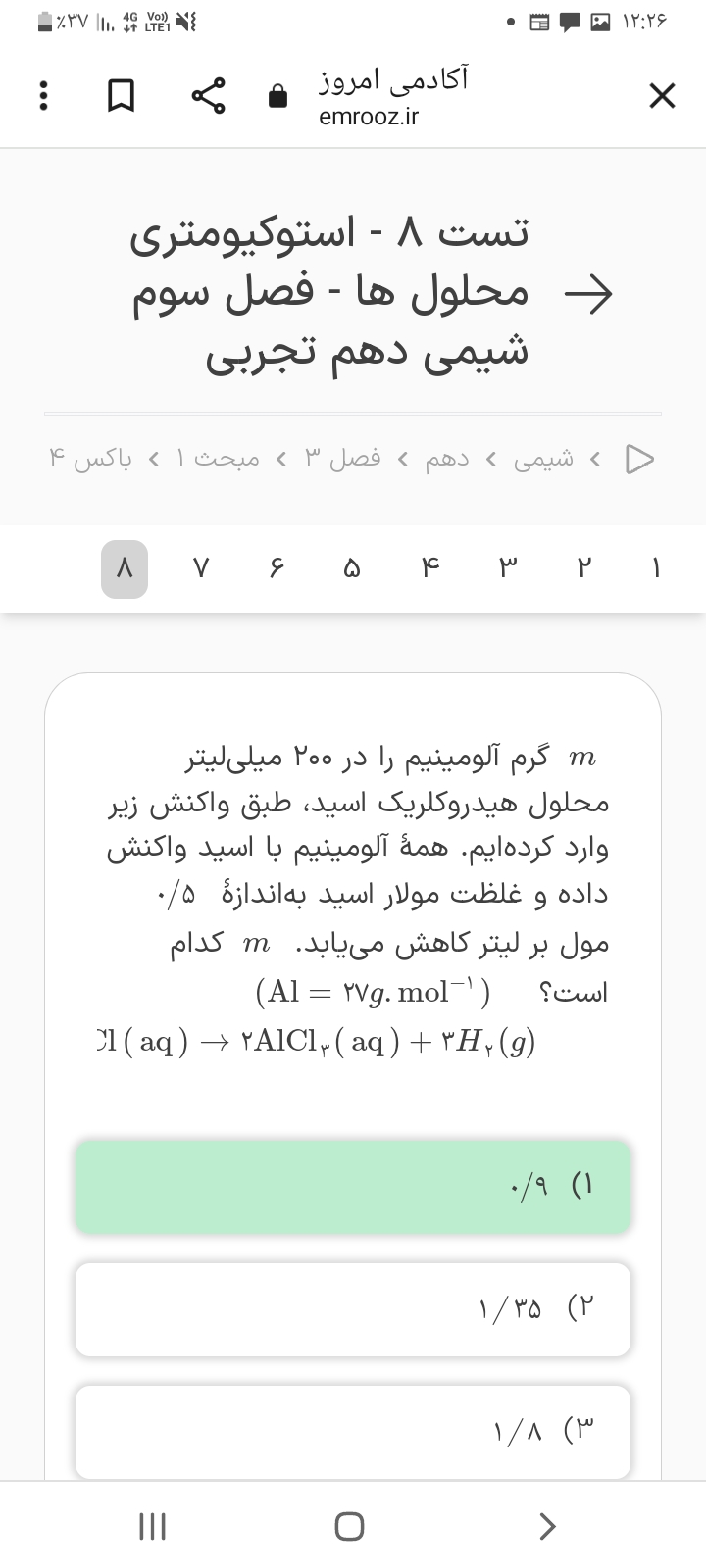 واکنش دوم حجم میشد ۳۰۰ ml که