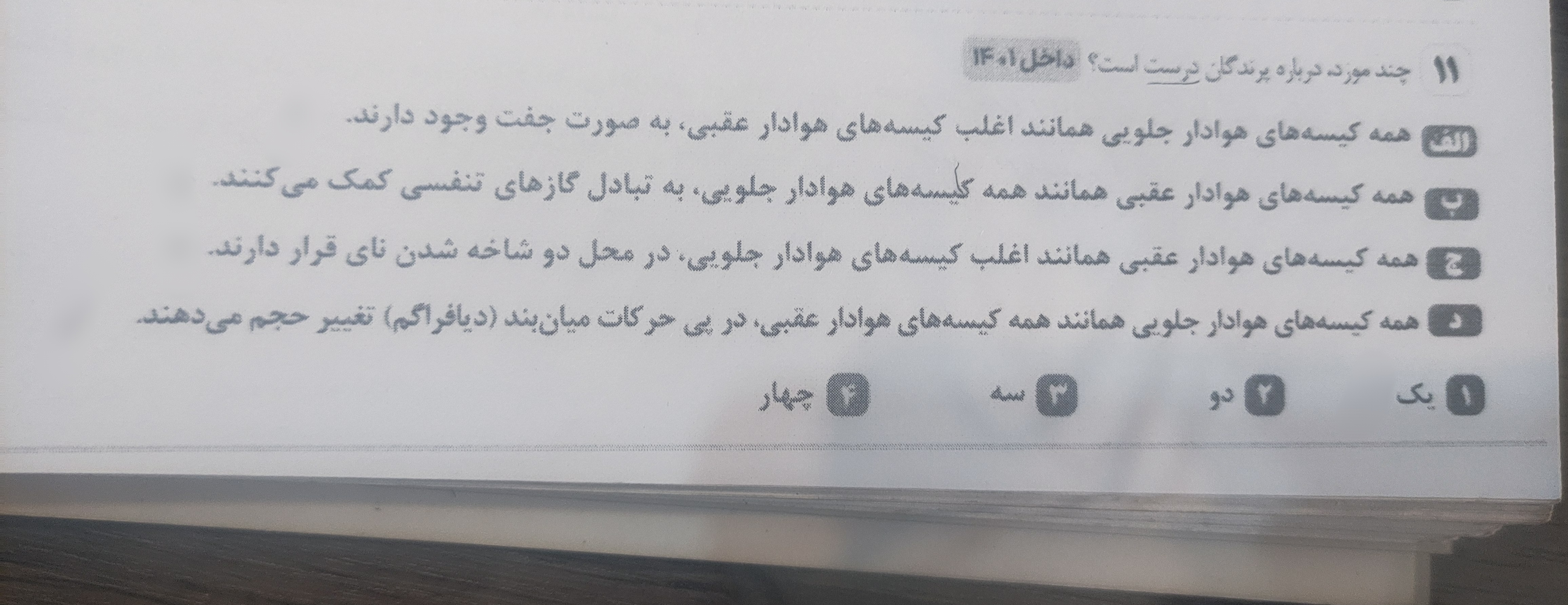 سلام گزینه4اگه میگفت نای و کیسه های هوادار به یک نسبت از سطح پشتی فاصله دارند باید درست میگرفتیم؟