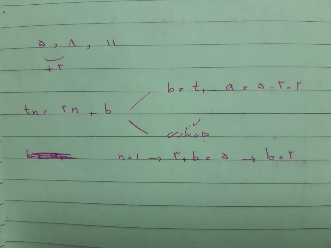 گلم از دو روش میتونید جمله صفرم یا همون b رو حساب کنید که براتون نوشتم . اولیش نکته ای هستش که استاد گفته بودن بدین ترتیب که میزان تفاضل جملات رو از جمله اول کم کنیم میشه جمله صفرم . دومیش هم که جایگذاری هستش .