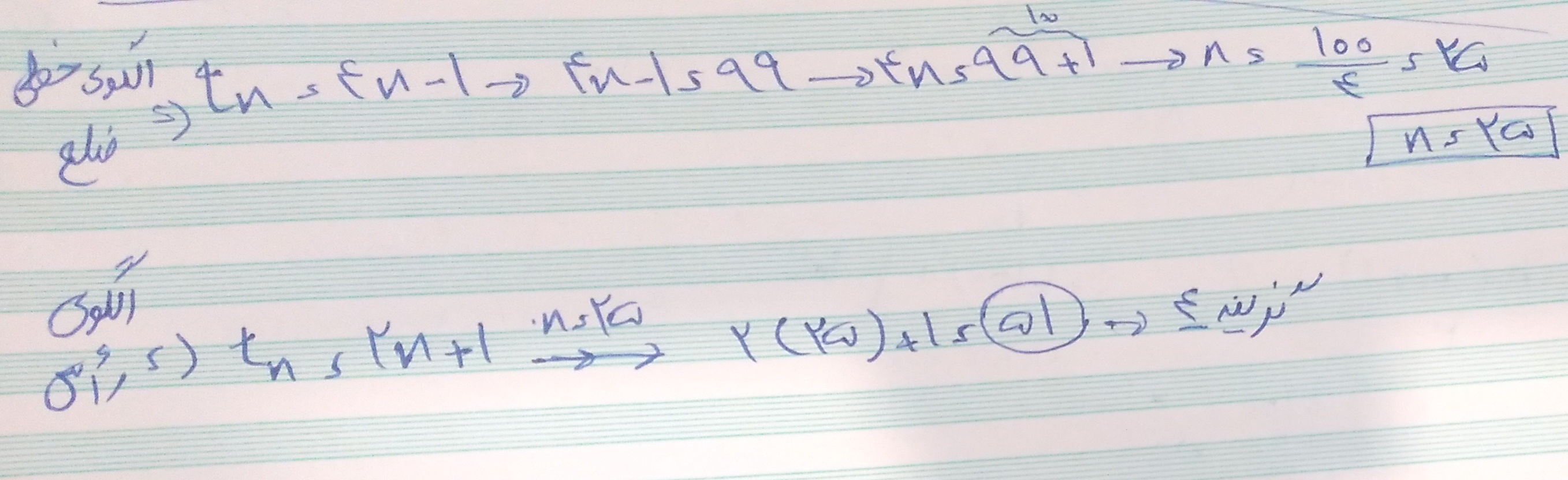 شما وقتی ۹۹رو مساوی با ۴nمنهای یک قرار بدین،میشه ۱۰۰مساویه با ۴nوقتی دوطرف رو بر ۴تقسیم کنی میشه n=۲۵