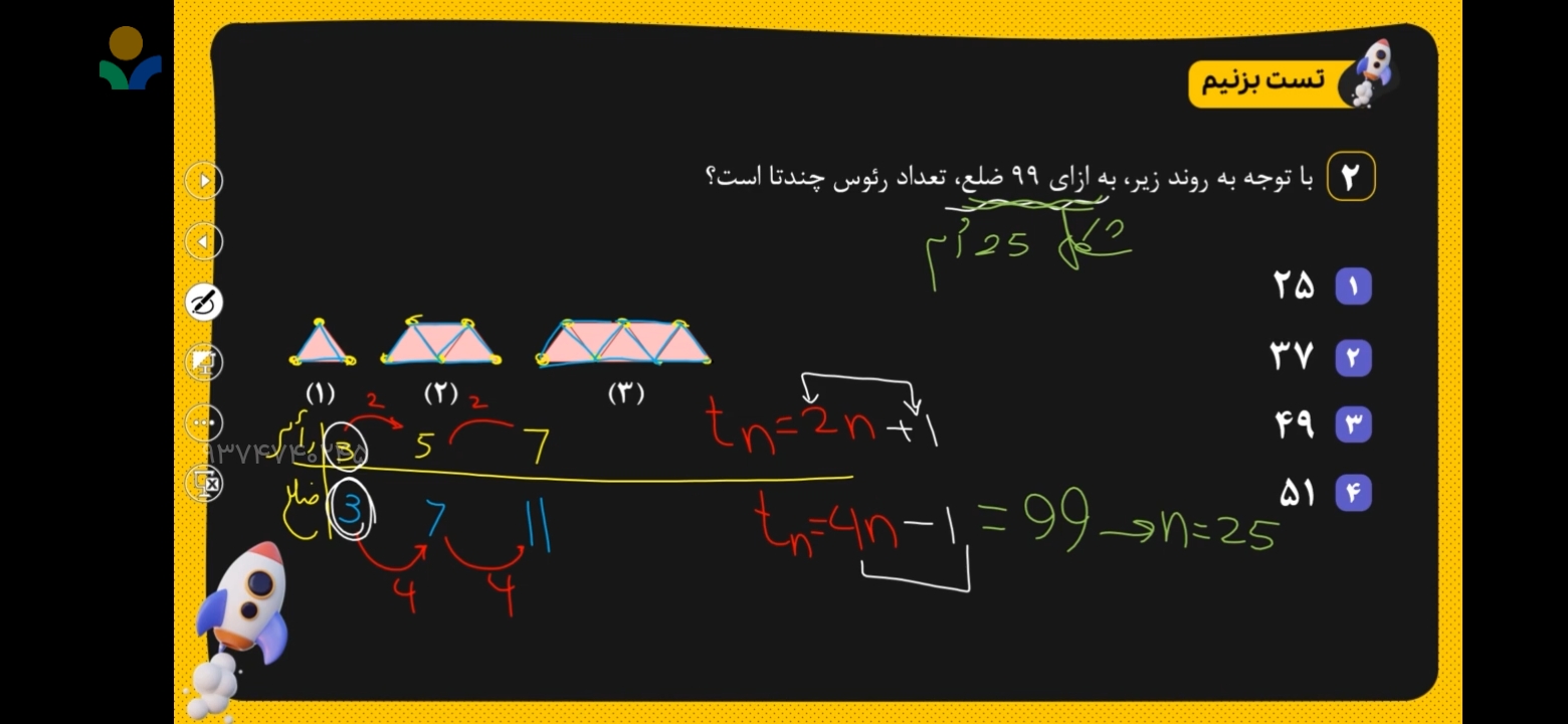 تست دوم یاد بگیریم ۱ چجوری ضلع ۹۹ شد n=25؟