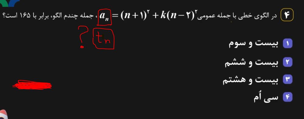 K جز جمله عمومی ما بود و در سوال آمده بود ولی چون الگو خطی بود باید k و اتحاد از بین می‌رفت و به جمله عمومی الگوی خطی تبدیل می‌شد