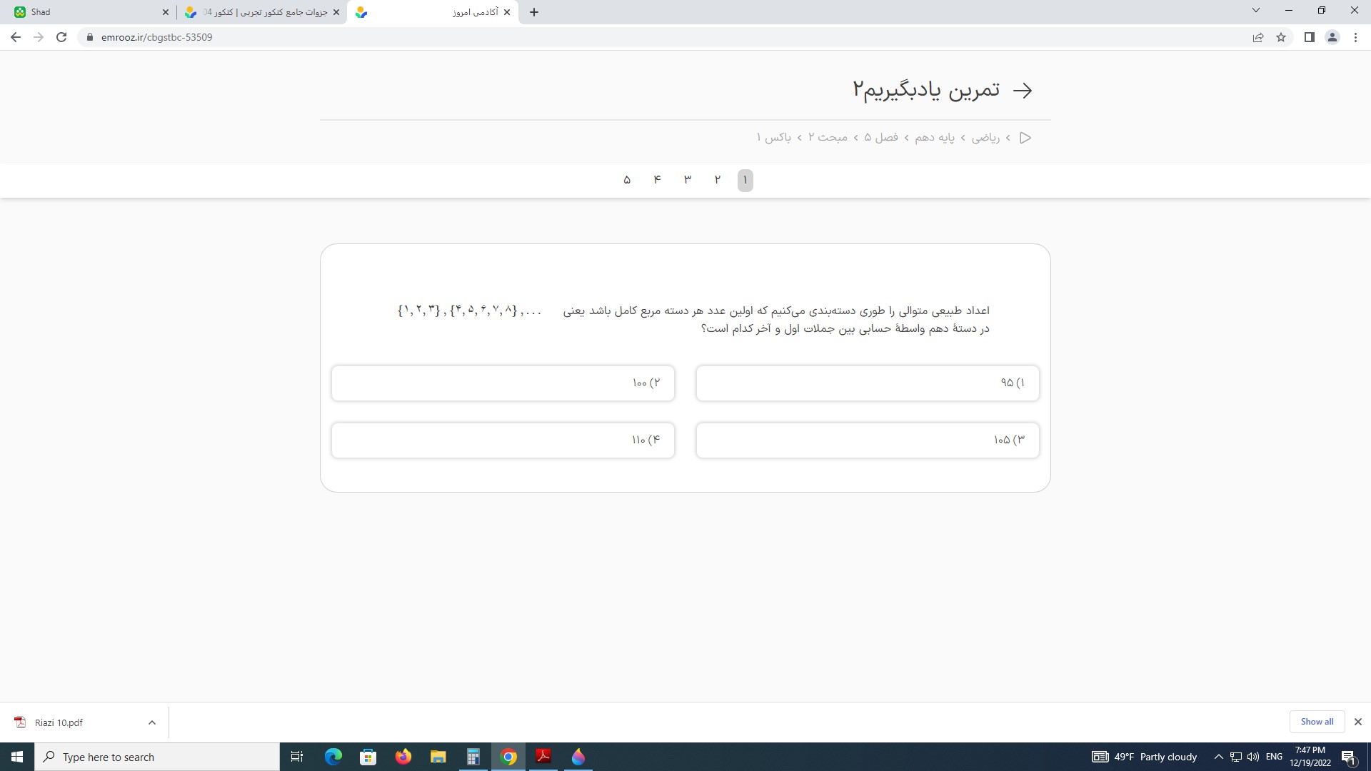 @ساینا اکرمی سلام و درود خب شما دارید میگید ۲۱ عدد داریم ولی از ۱۰۰ تا ۱۲۱ ما ۲۲ عدد داریم عدد آخر دسته ما هست ۱۲۰ نه ۱۲۱