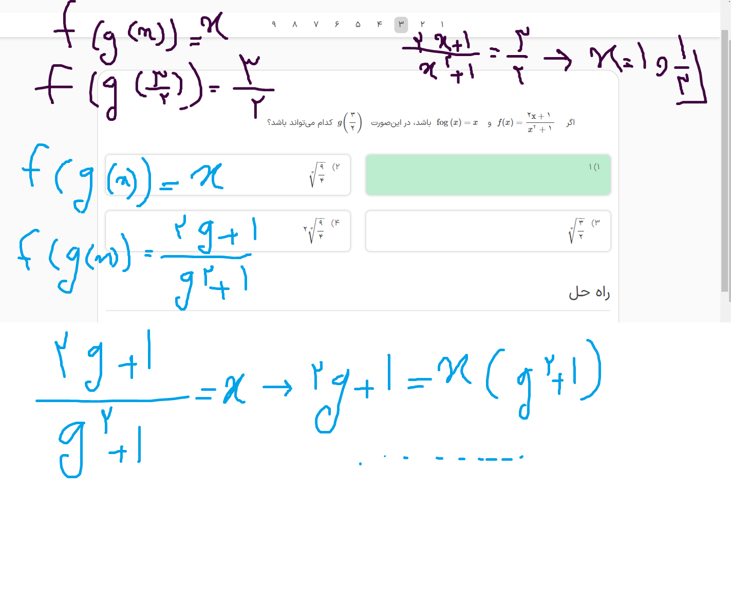 سلام توی این سوال تمرین، یک سوم هم میتونست جواب باشه؟و اینکه میشه ببینید اشکال من کجاست که ضابطه g(x)را نمیتونم به دست بیارم.