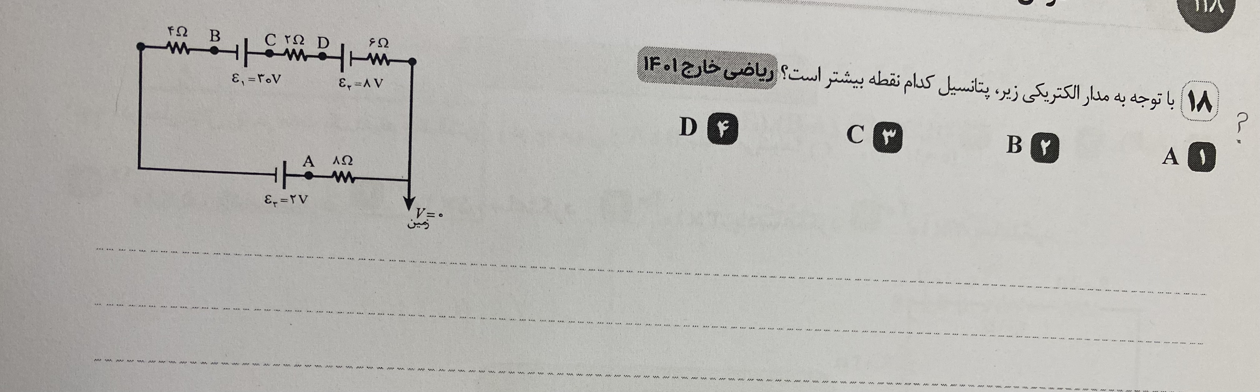 گزینه 3 مقاومت داخلی نداریم بخاظر همین اگه ذهنی بری ک مشخصه اپسیلون بر r میشه اگه تشریحی بخای باید از نقظه a تا زمین هرچی هست بنویسی