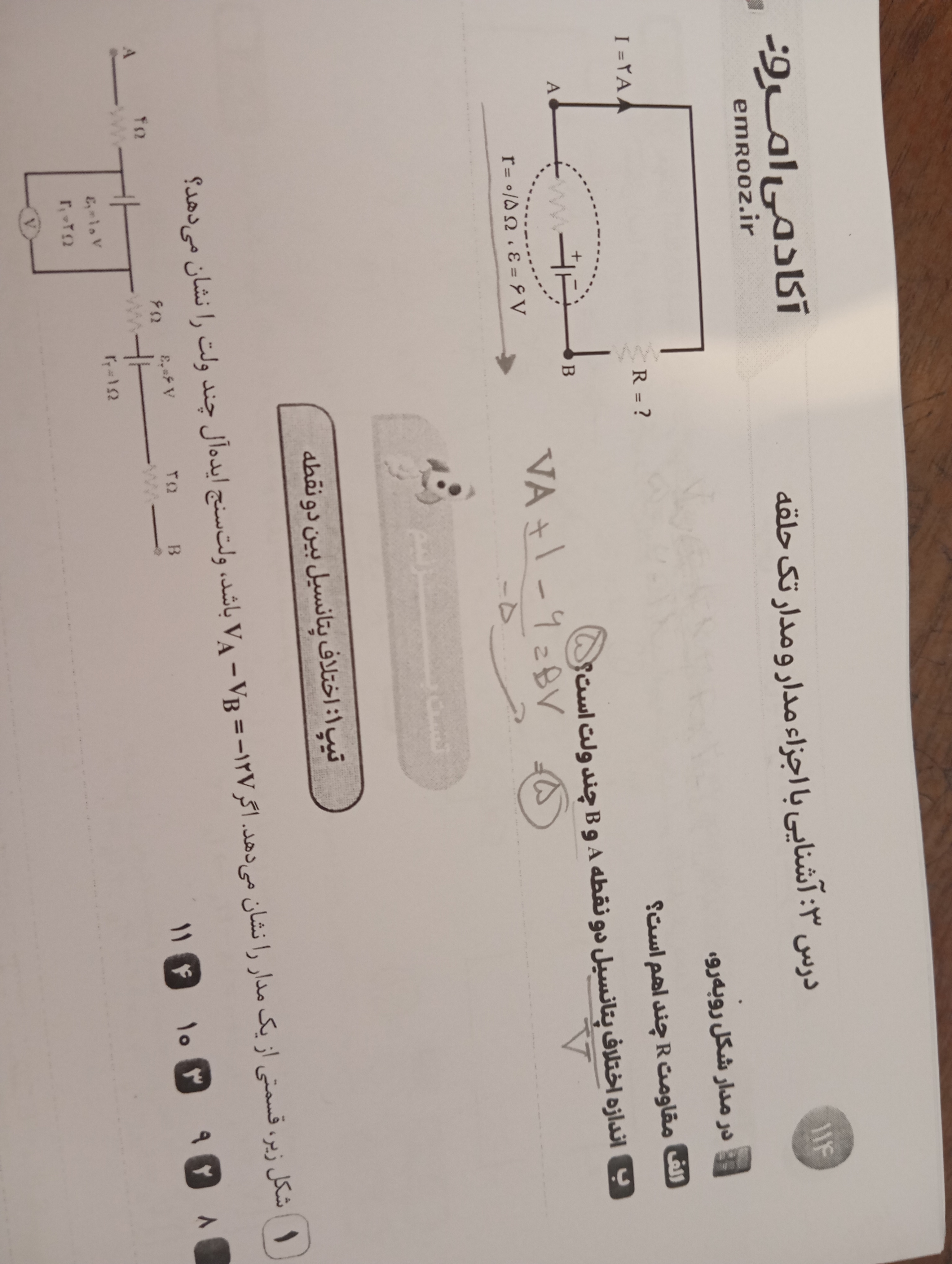 سلام وقت بخیر ببخشید استاد تو محاسبات ولتاژ یاتری مولد اشتباه کردن جریان شد منفی 0.5 در مقاومت داخلی که 2 هست ضرب بشه میشه منفی 1 با 10 جمع بشه میشه 9 اما استاد 11 زدن