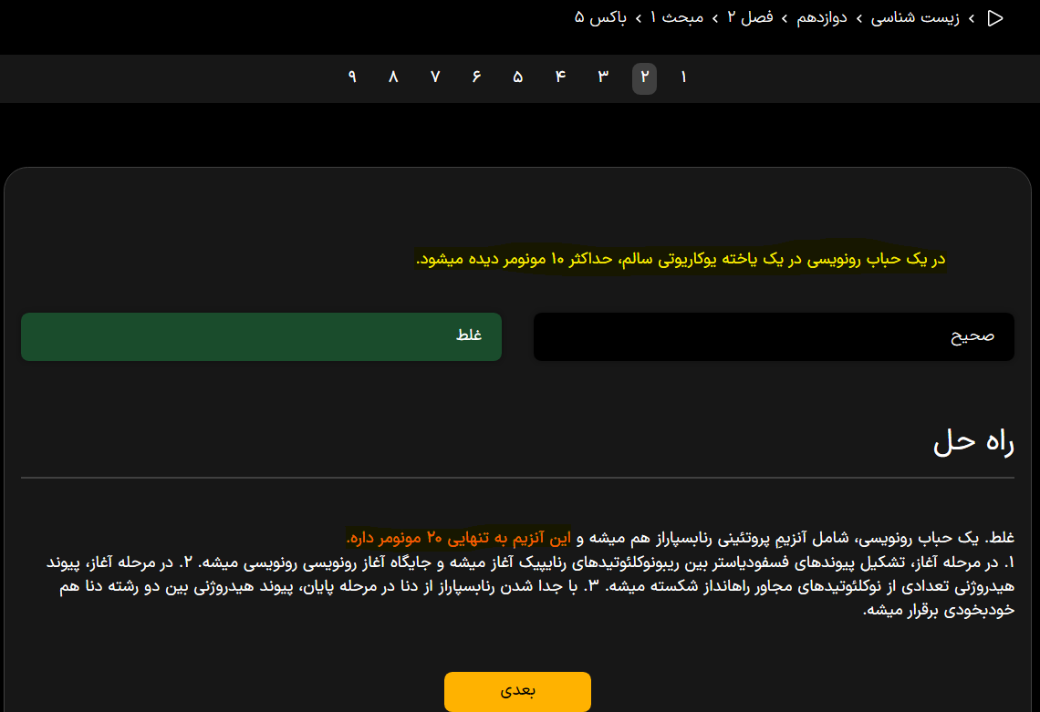 سلام وقتتون بخیر ببخشید تو گزینه دو نباید میبود به بخشی از یک رشته دنا؟؟
