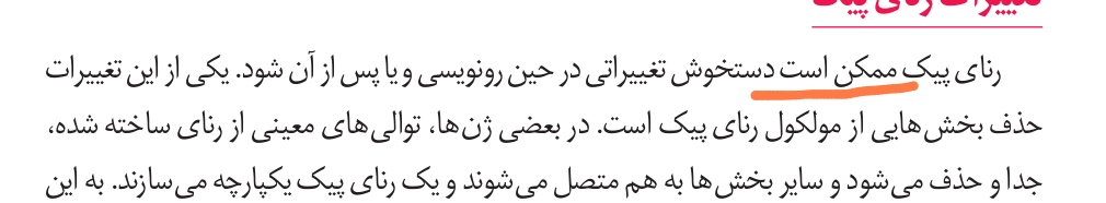 صورت سوال راجع ب RNAگفته RNA محصول رونویسیه رونویسی هم طی فرایند سه مرحله ای کارشو انجام میده (آغاز_ طویل شدن_ پایان)