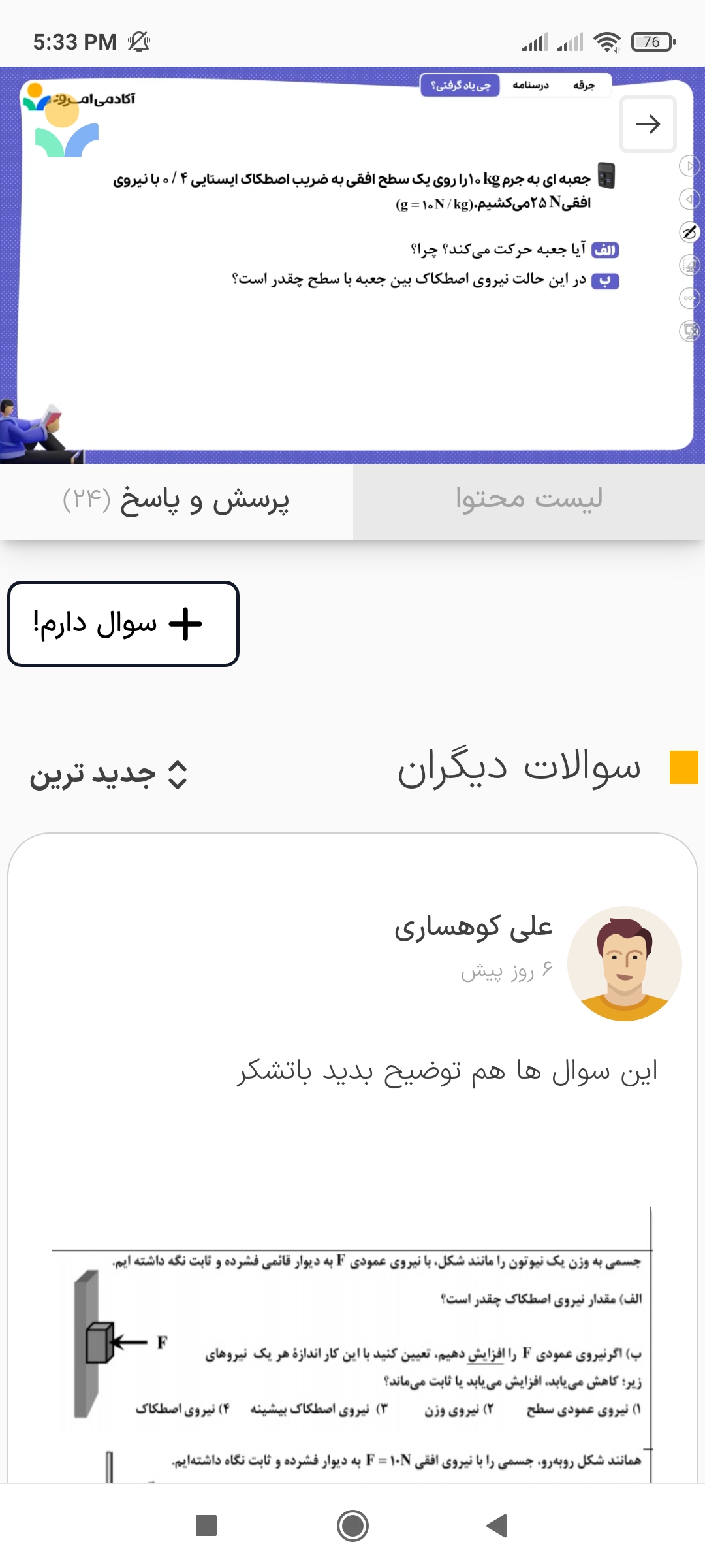 یادبگیریم2: مسائل نیروی اصطکاک (قسمت اول)
