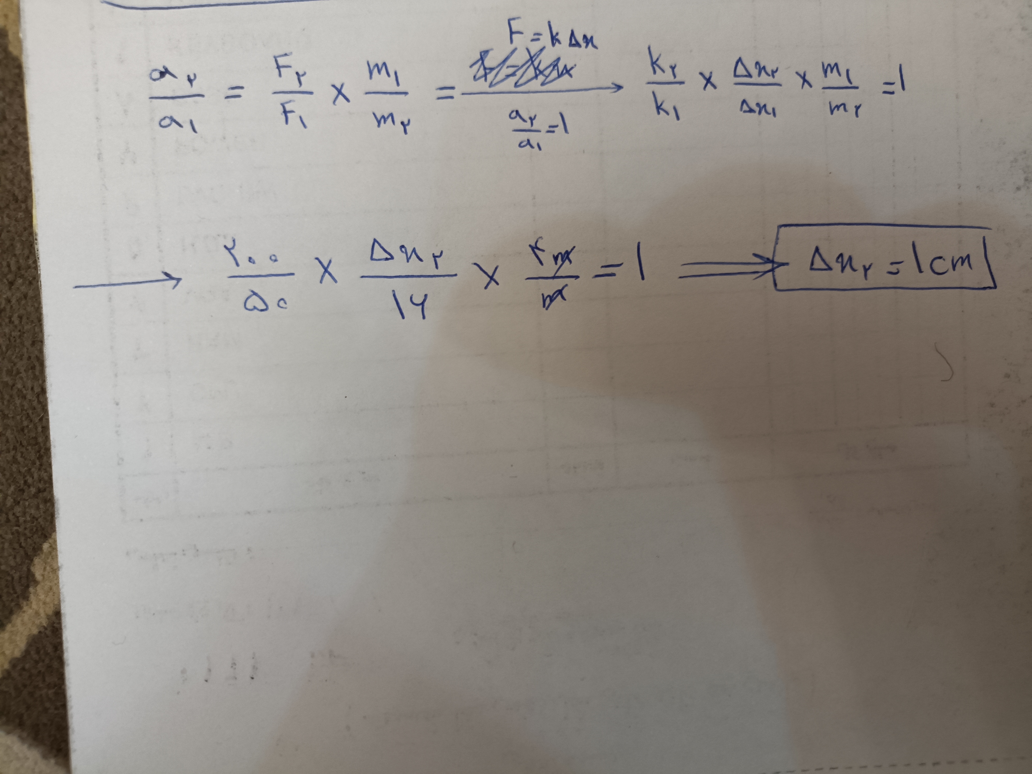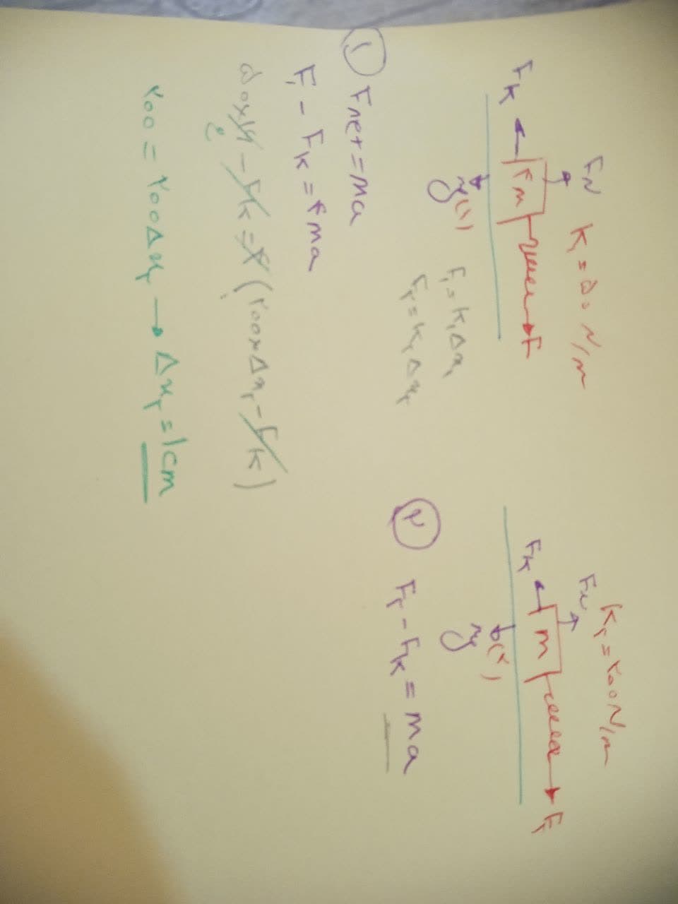 سلام نه روشتون درست نیست اینجا F،نیروی کشسانی فنر هست،نه نیروی وزن با نیروی وزن هیچ کاری نداریم در این سوال کلن از فرمول های اشتباهی حل کردید