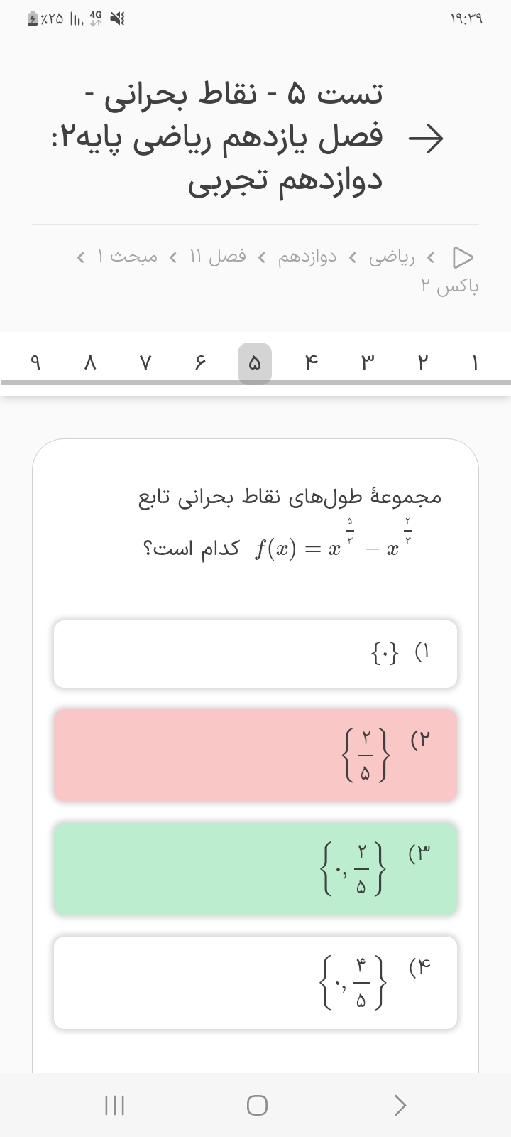 چون اگر مشتق این تابع رو بگیریم،عدد صفر باعث صفر شدن مشتقش میشه و همچنین عدد صفر در دامنه این تابعه پس بحرانیه(به دلیل این دو شرط)