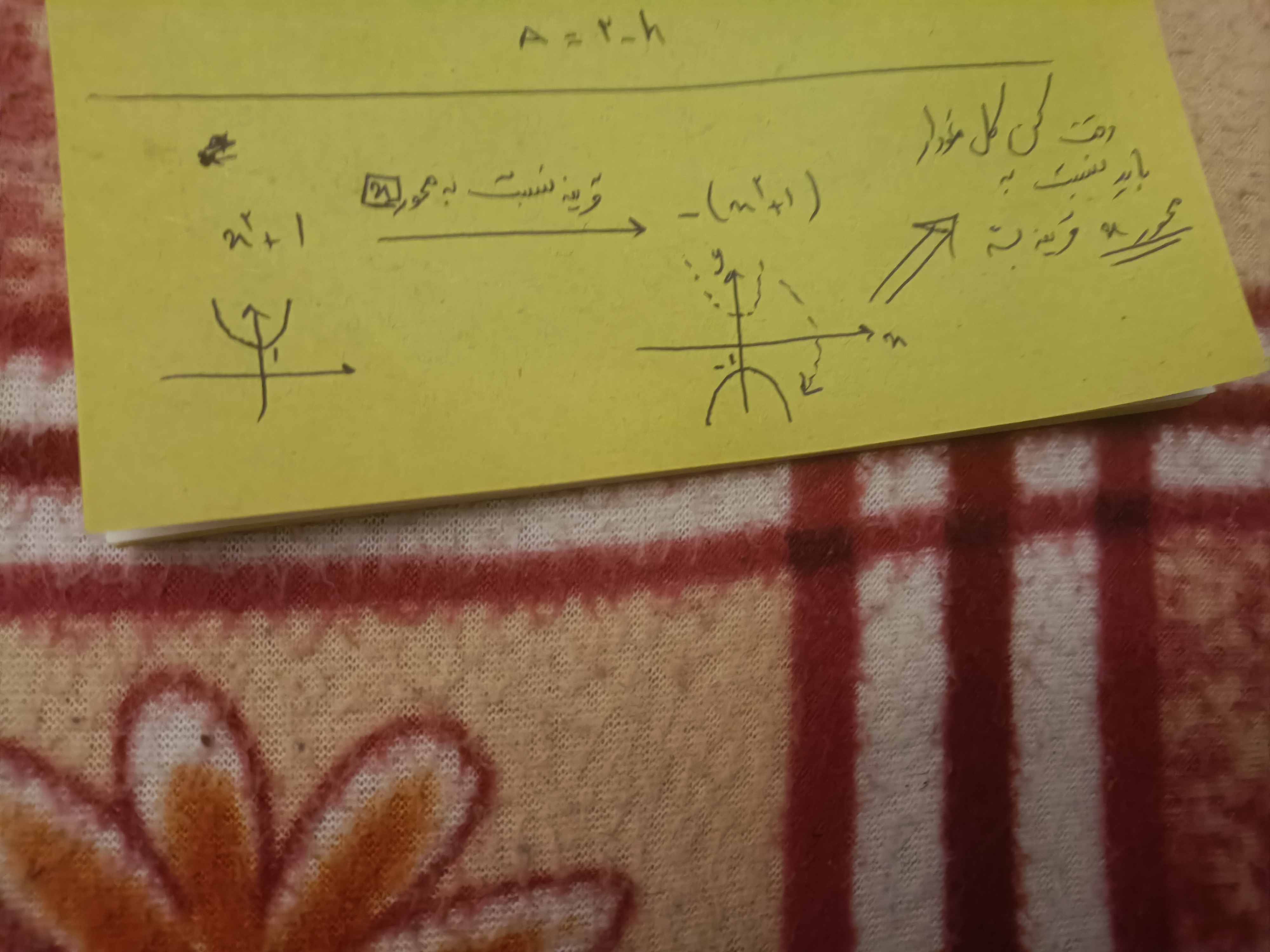 متاسفانه متوجه نشدم سوالم قسمت صورتی رنگ هست که شده مثل قسمت آبی رنگ بالا فقط چون منفی داره باید برعکس بشه درسته اگه نه لطفا برام کتبی توضیح بدین ممنون میشم اگه منظورتون این هست اول منفیxبه توان دو رسم میکنیم بعد یکی میاریم پایین چرا با قرینه ش دوتا راه حل یکی نمیشه؟ کلا گیج شدم