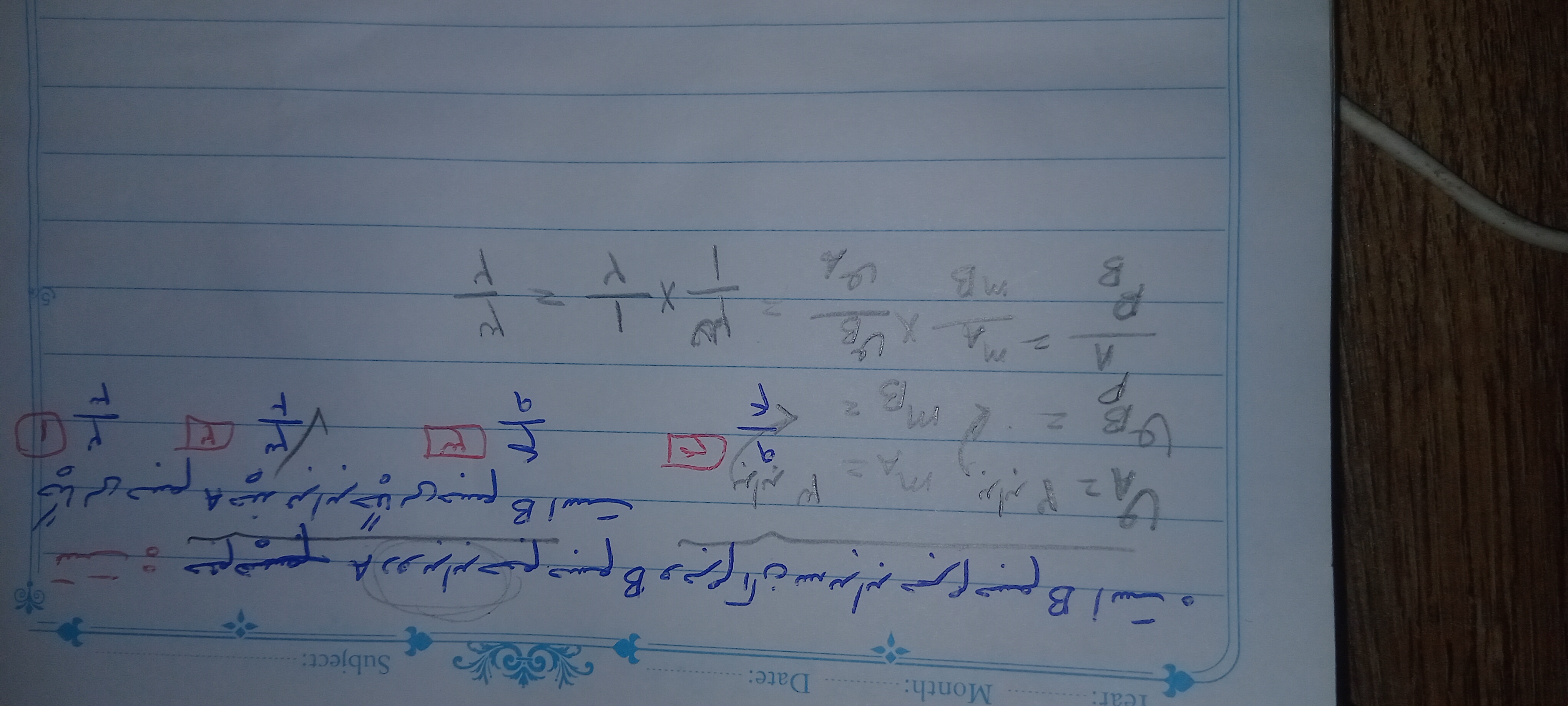 ببین همون طور که فرمول چگالی نسبتی رو استاد توضیح دادن باید بیای اول اطلاعات سوال رو مشخص کنی که درون سوال به تو گفته حجم Aدوبرابر حجم B هست یعنی تو بیا به جای حجم Aبزار عدد 2 بعد به جای B بزار 1 چون حجم A دو برابر حجم B هست بعد اومده گفته جرم A میشه سه برابر جرم B هست یعنی به جای جرم A بزار 3 بعد به جای جرم B بزار 1 که جواب مثل تصویر پایین میشه