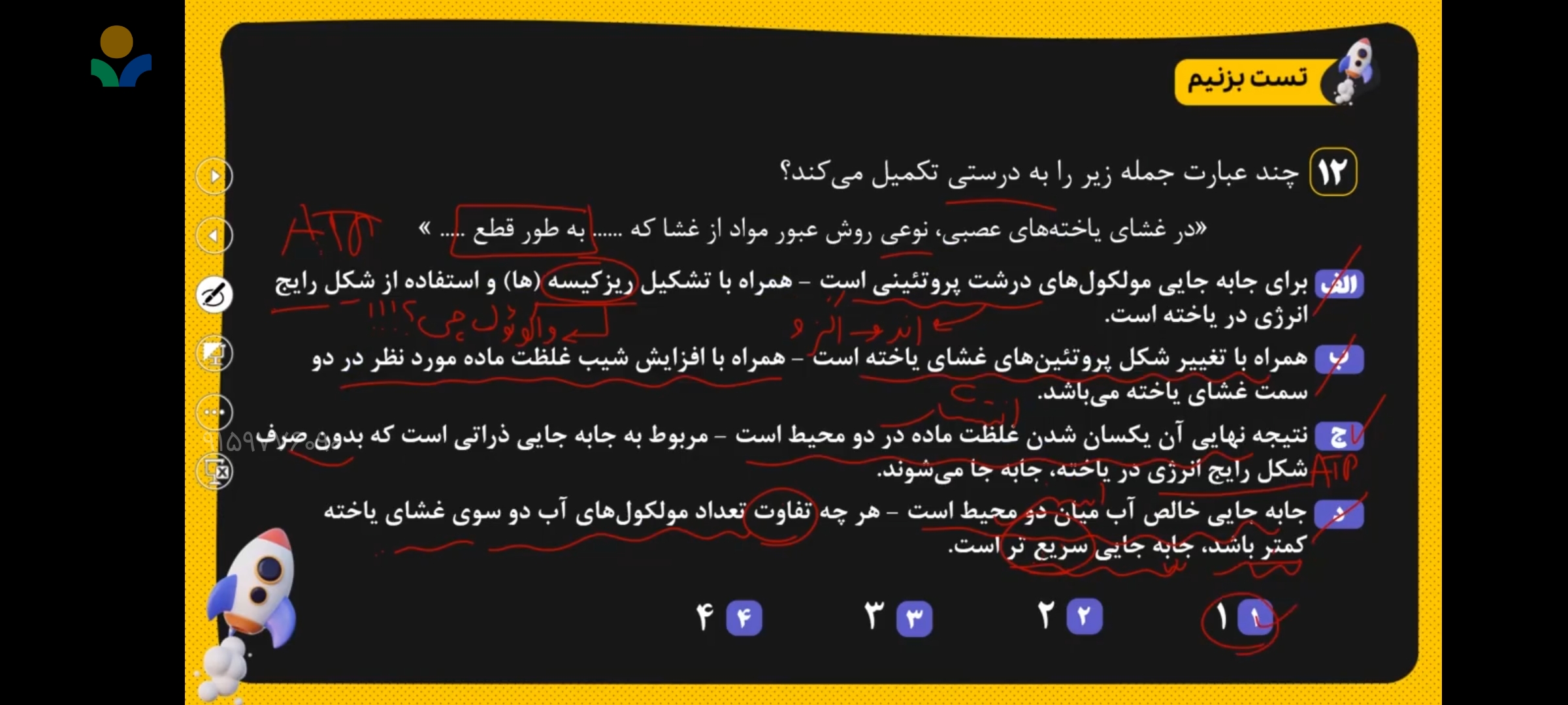گزینه ۳ رو میشه اینجوری رد کنیم که توی انتشار ساده مواد از پروتئین منفذ دار گذر نمیکنن؟