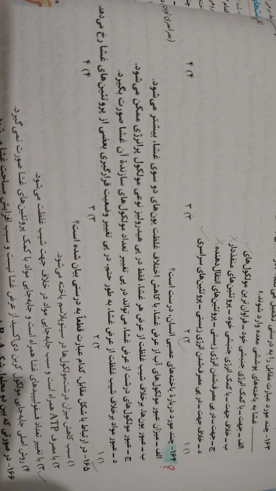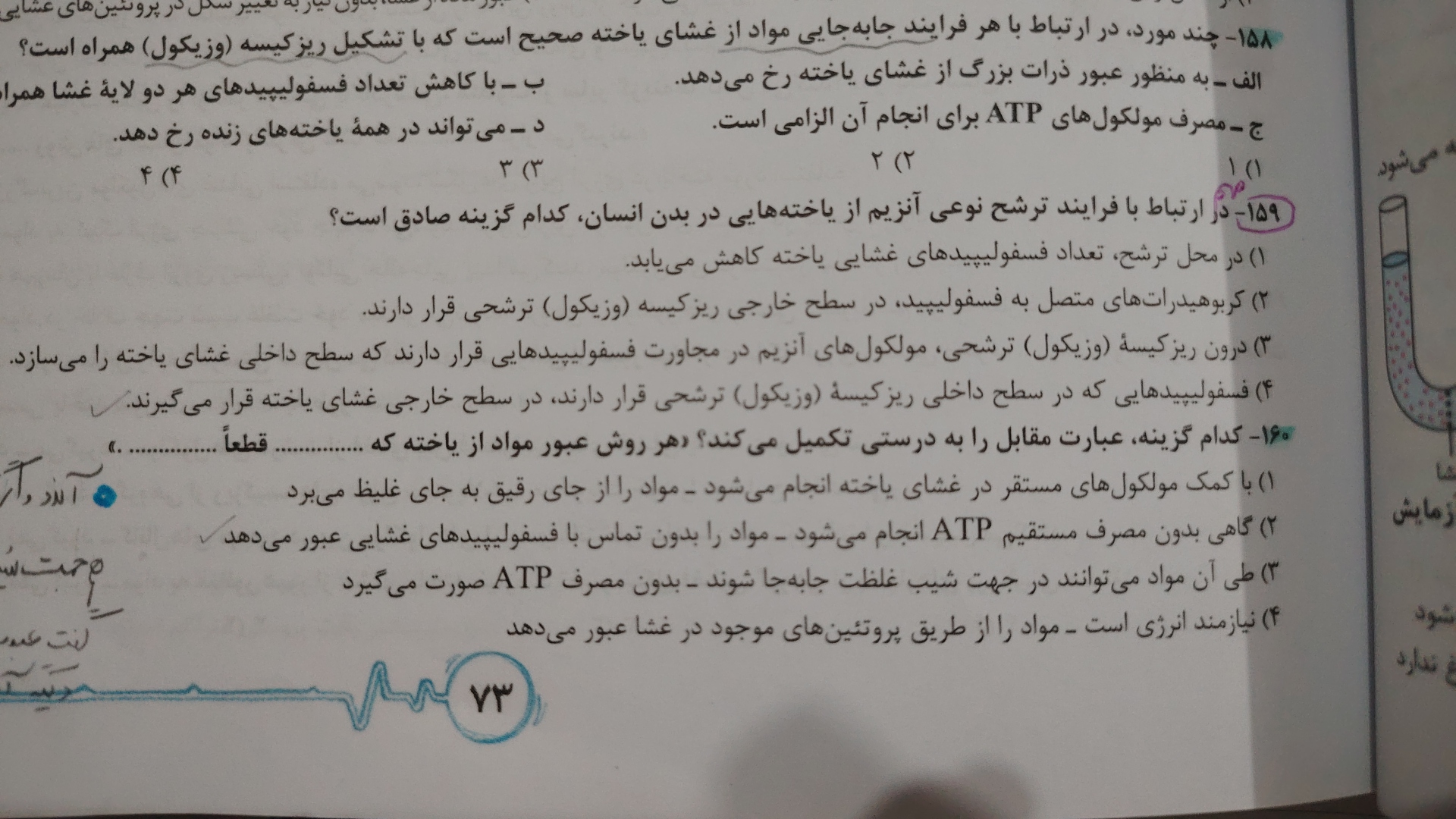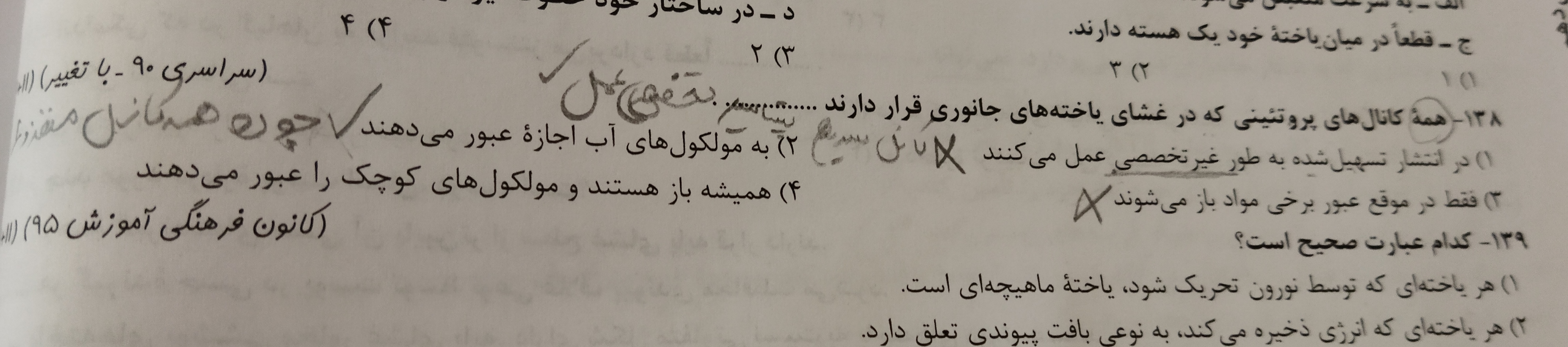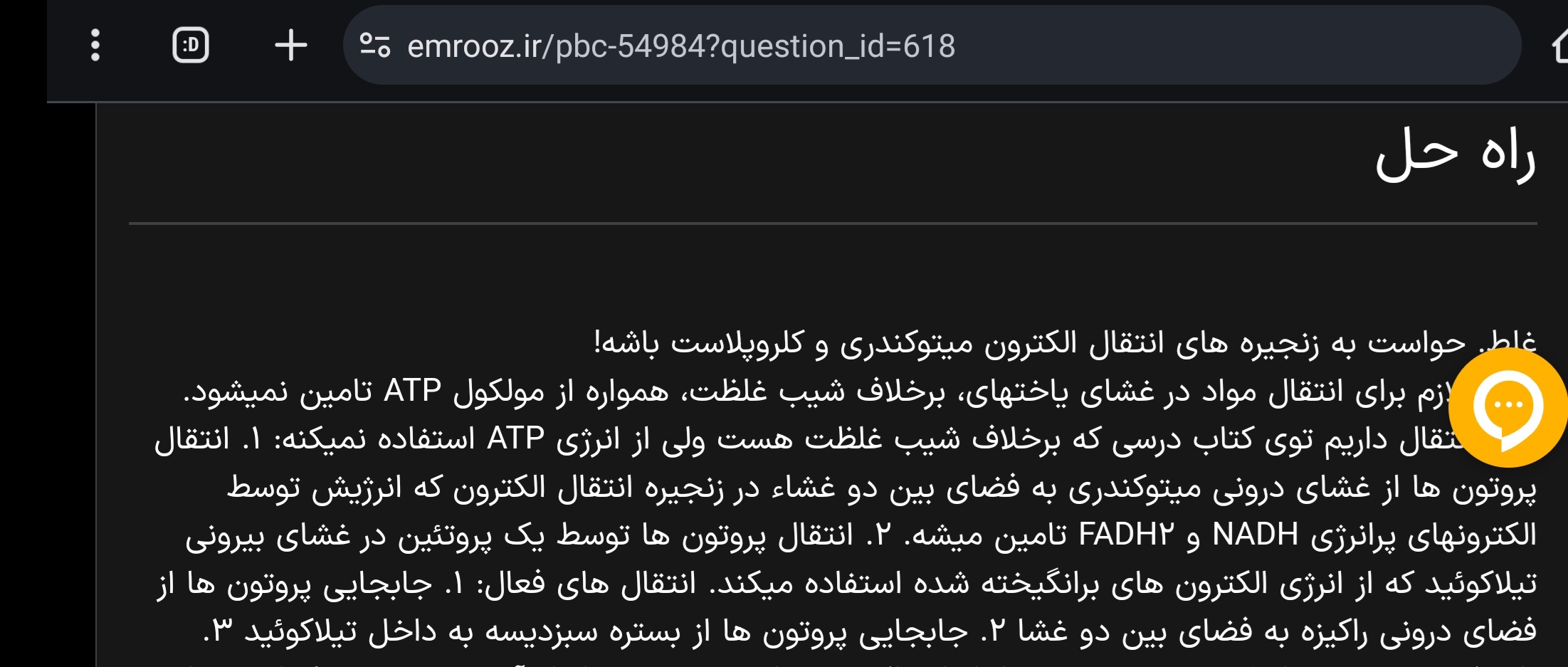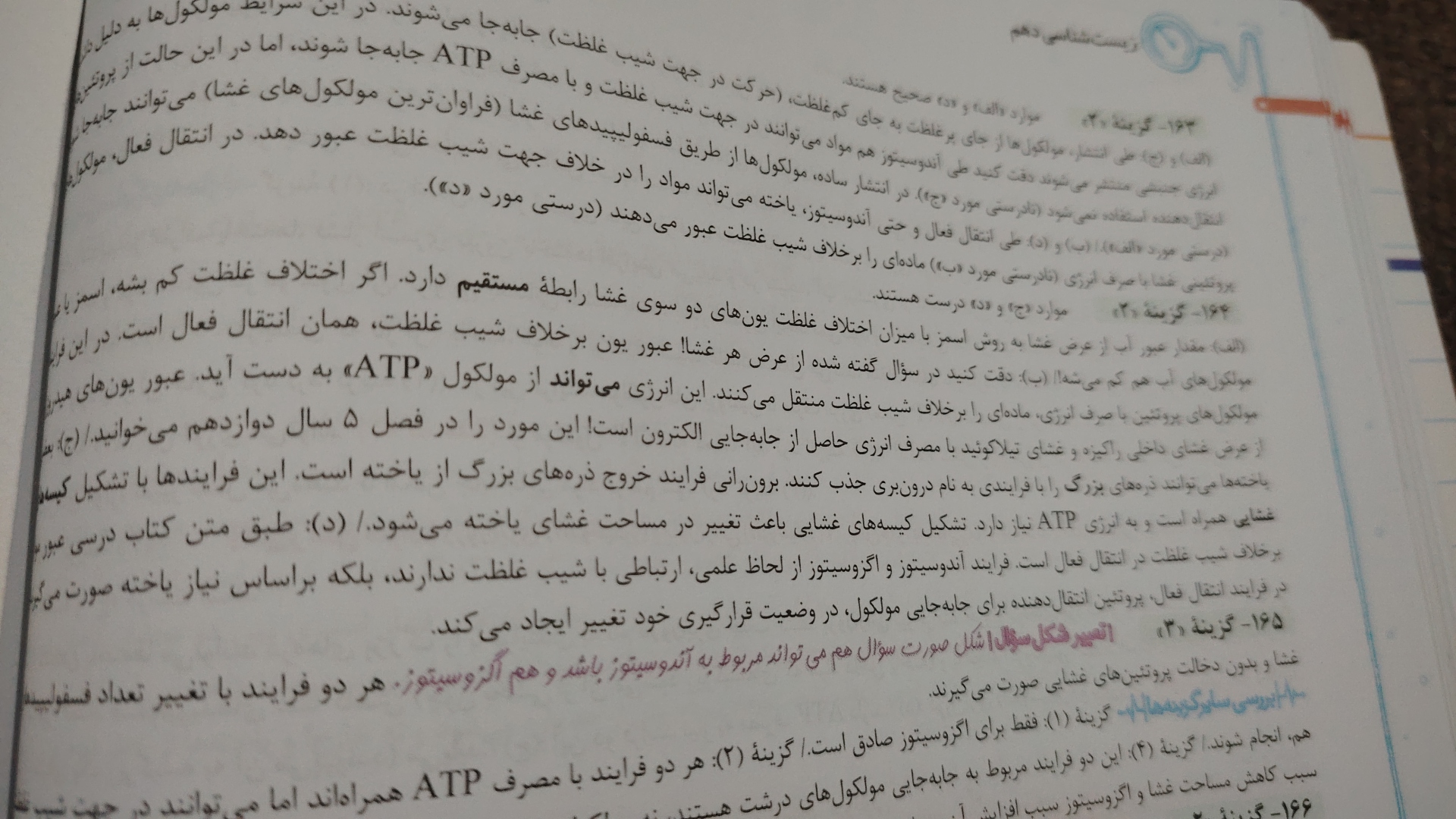 سلام و وقت بخیر. سوال گفته ...در هر غشای موجود در یاختههای بافتی که بزرگترین ذخیرۀ انرژی در بدن هستند،هر پروتئینی که مواد را در خلاف جهت شیب غلظت منتقل می کند، قطعاً ATP مصرف می کند....غلط منظور اصلی اشاره دارد به انتقال فعال که یکی از دو عامل اصلی ان مصرف انرژی بود که --اغلب-- ان یعنی 95 درصد ان بستگی به َATP داشت و 5 درصد ان بستگی به الکترون های پرانرژی داشت ولی سوال گفته --قطعا-- ATP مصرف می کند خودم هم دهم هستم و بنظرم هر چه بیشتر بلد باشیم بهتره و برای درس زیست من مفهومی حفظی می خوانم.