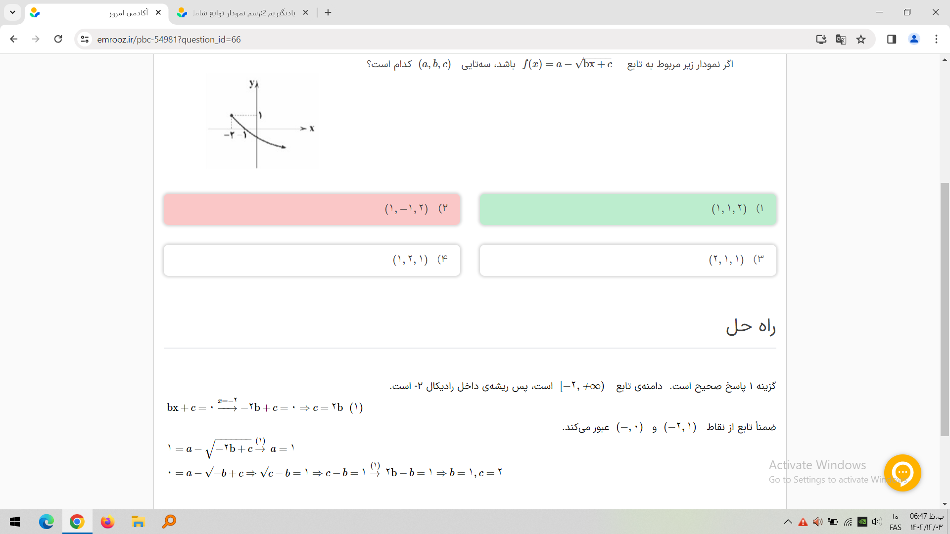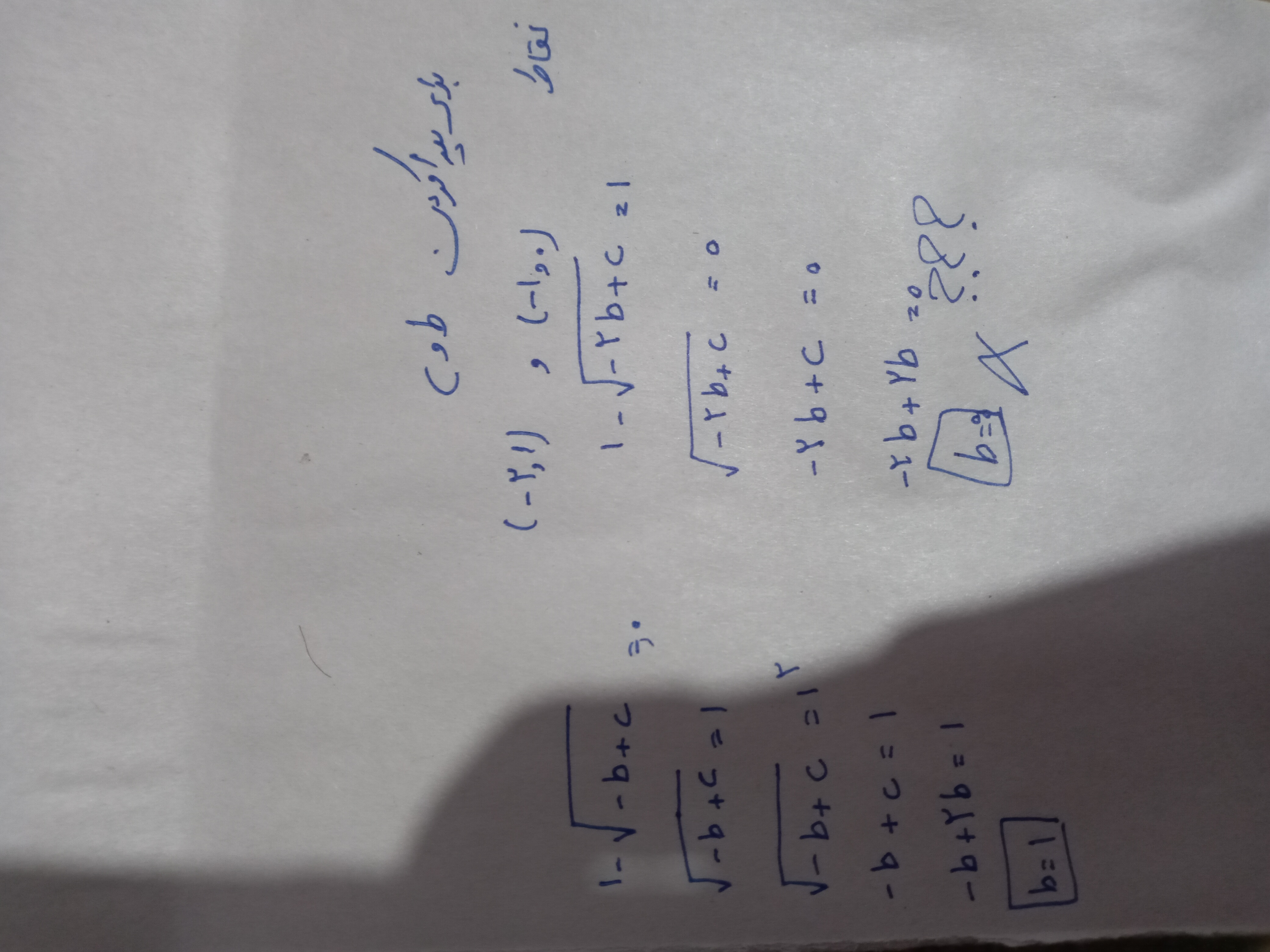 سلام وقتتون بخیر ببخشید تو این سوال برای پیدا کردن b،من وقتی با نقطه (-۲و۱)امتحان میکنم درست در نمیاد میشه لطفا بگید کجارو اشتباه میرم؟