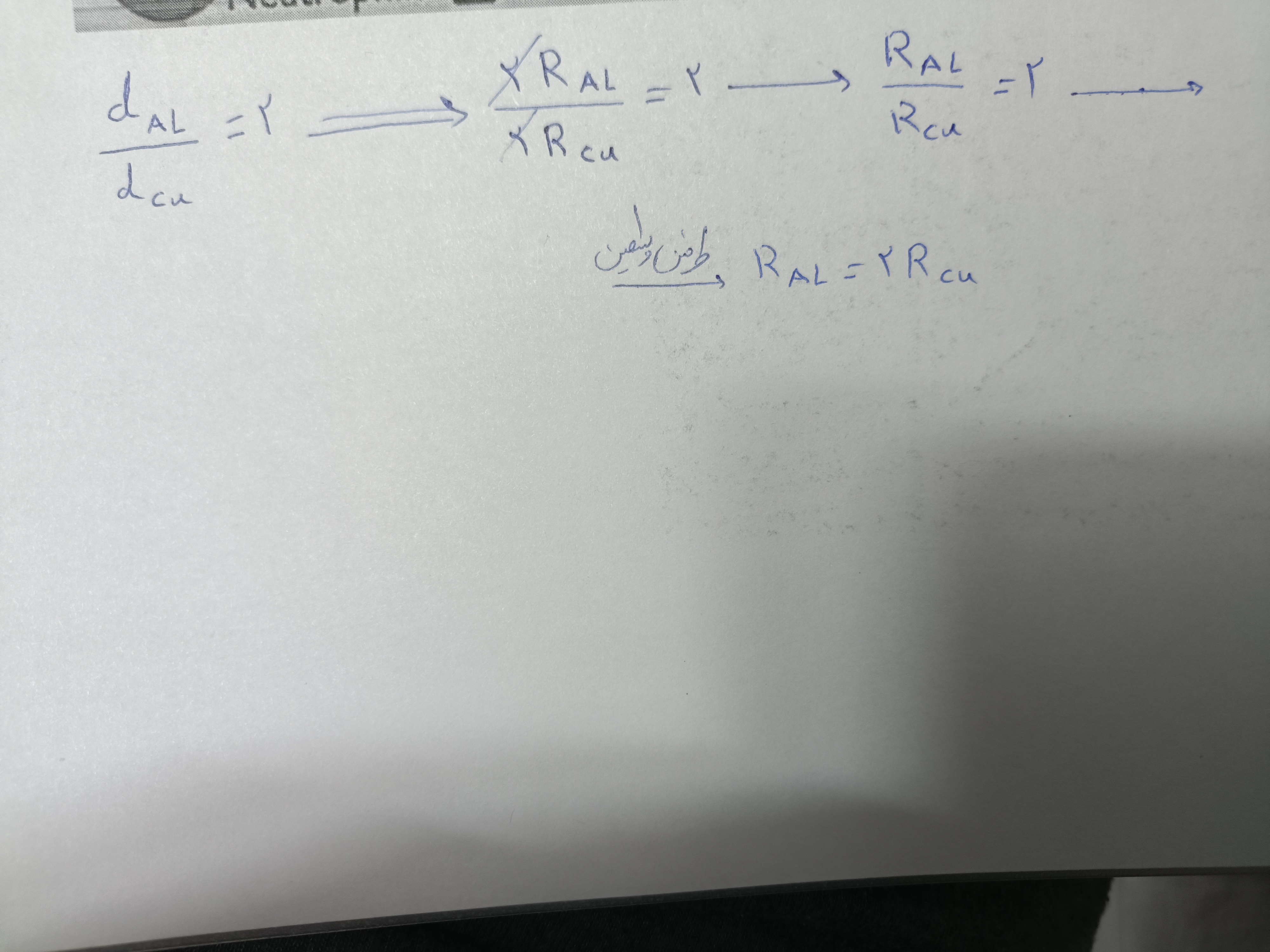 اونجایی که استاد ؛توی فرمول داشتن جای گذاری میکردند؛ چرا گفتن که یک قطر cu بر روی ۲ قطر cu ؛مگه نباید باشه 1 قطر al برابره با ۲ قطر cu؟؟