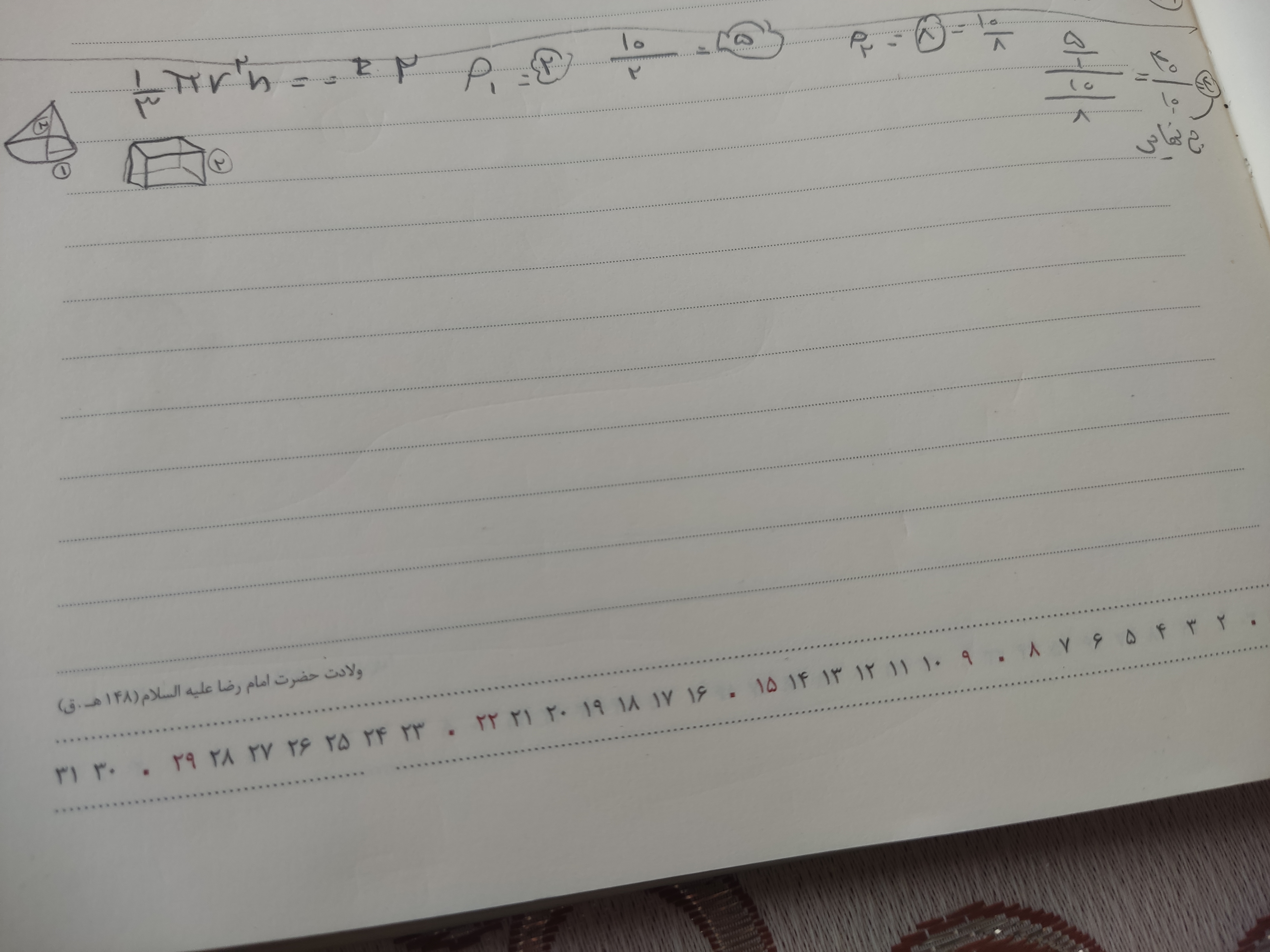 سلام دوست عزیز>< فرمول حجم مخروط هستش 1/3پی ار به توان دو در ارتفاع مخروط که استاد سهوا توان 3 گذاشتن. باز ابهامی هست بپرسید =)