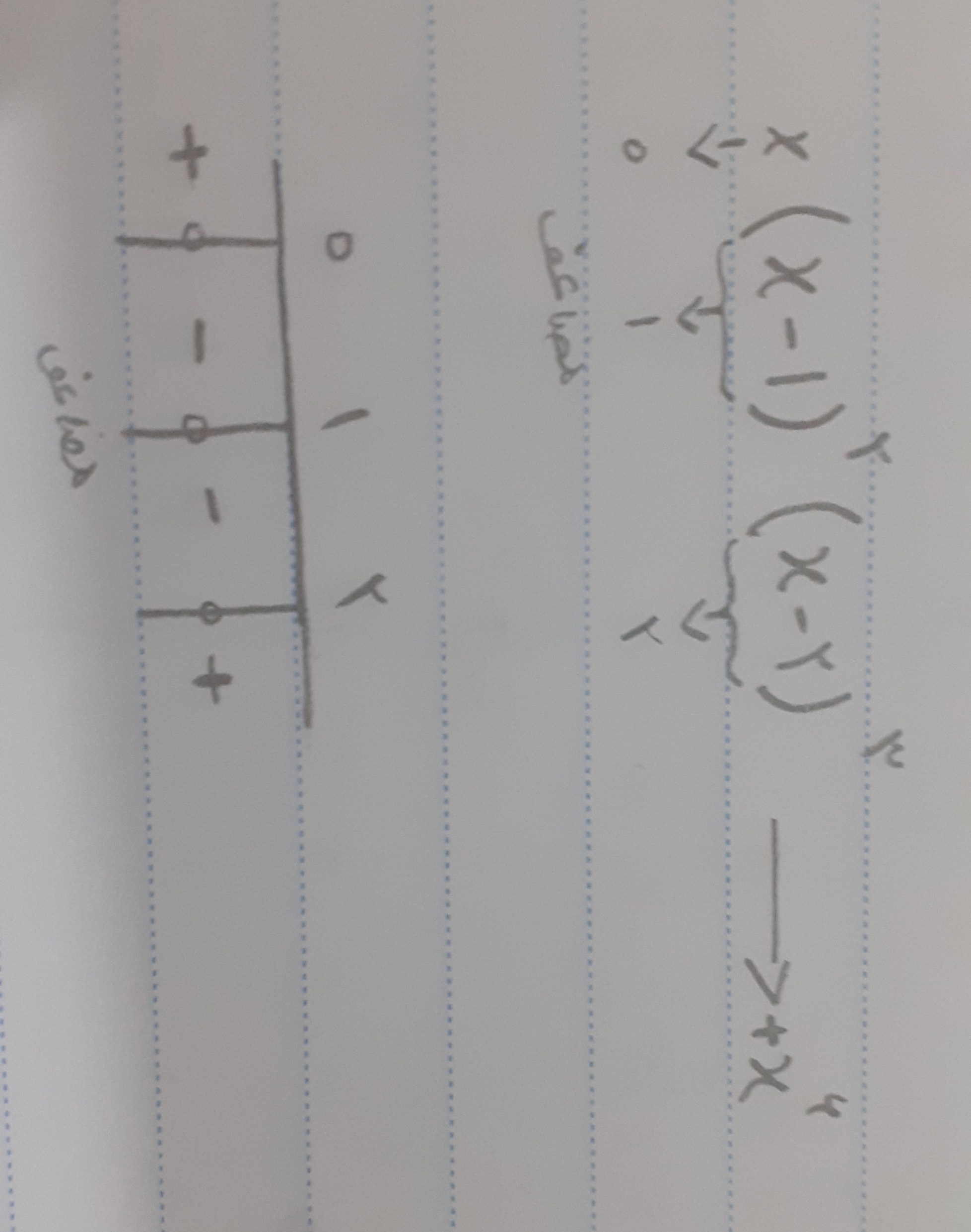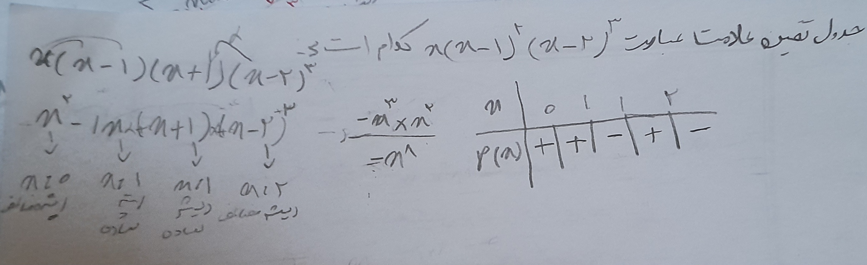 سلام ریشه مضاعف یعنی ریشه عبارتی که توان زوج داره. اولین خونه از سمت راست باید هم علامت با بزرگ ترین درجه x باشه؛ خونه های بعدی رو یکی در میون علامتاشو عوض می‌کنیم ، بجز ریشه مضاعف که دو طرفش باید هم علامت باشه.