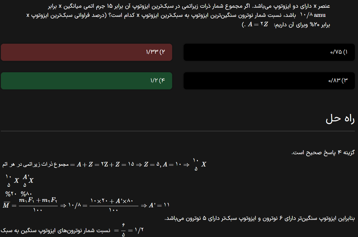 سلام خوب هستید ببخشید اینو میگم ولی من الان رفتم یک تست حل کنم از سوالات کنکور درباره ی همین مبحث چون جرم سبک تر را نداشتم و نمیونستم کدومه اصلا نتونستم با این راه حلی که استاد میگه حل کنم😔😔 اگه هم که سوالو بفرستم چون غیر مرتبط با شما هست جواب نمیدین،تست های استاد رو هم که دیدم همه جرم سبک رو مشخص کرده بودن 🙂