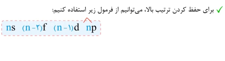 سلام من اینو متوجه نشدم که الان Al خب سه تا از نئون بیشتره میشه 2s2 2p6 بعد میدونم بعدش قراره 3s بیاد اما نمیتونم تشخیص بدم 3s2 3p1 میاد چون خودم قبلا که حل کردم فهمیدم بعدیش 3s2 هست اما نتونستم 3p1 را تشخیص بدم راهنمایی میکنید
