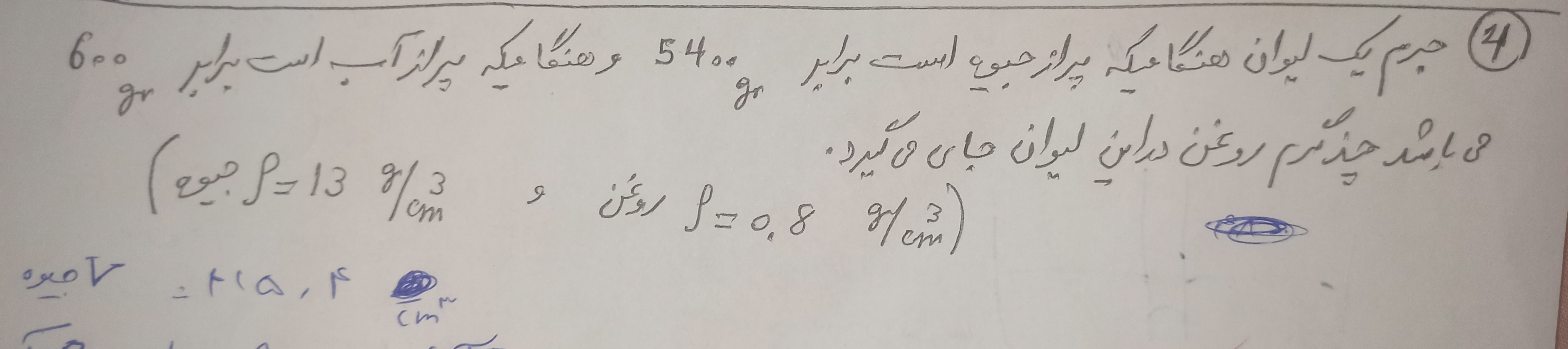 سلام ببخشید میشه حالتی رو حل کنید که جرم مایعی که ریخته شده یکسان باشه