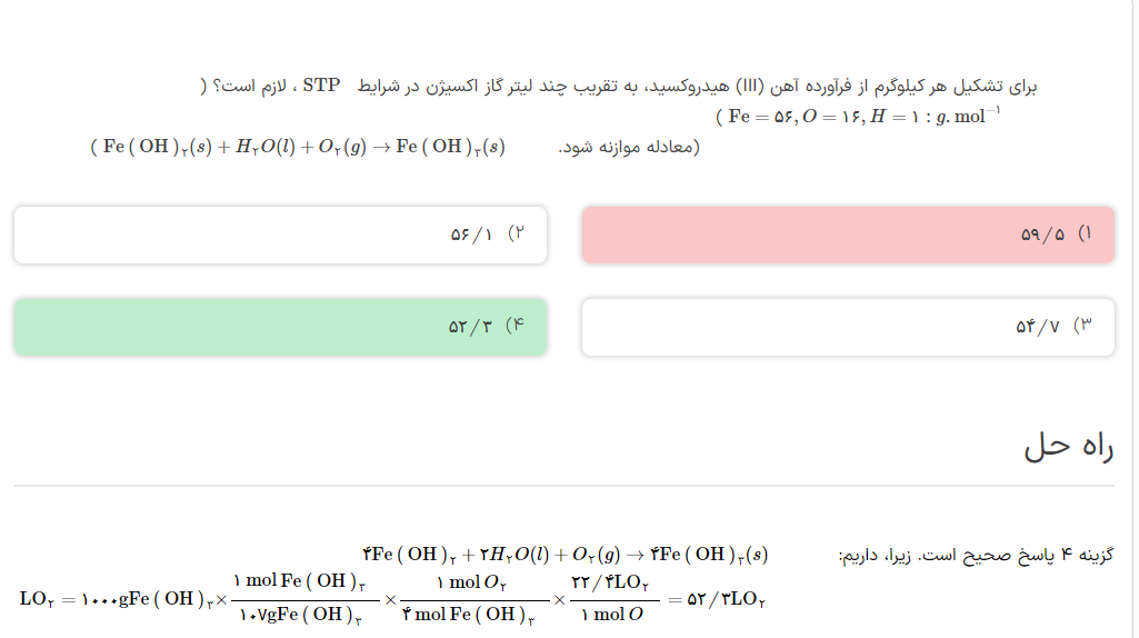 صورت سوال گفته در فرایند هابر تو کتاب نوشته شرایط فرایند هابر دمای ۴۵۰ درجه ی سانتی گراد و فشار ۲۰۰ اتمسفر هست. یعنی شرایط غیر STP. بعد تو راه حل سوال اومده حجم مولی گاز رو گرفته ۲۲/۴، چجوری؟؟ وقتی شرایط غیر STP هست که نمیشه ۲۲/۴ باشه میشه بیشتر توجه کنید رو جواب سوالا؟