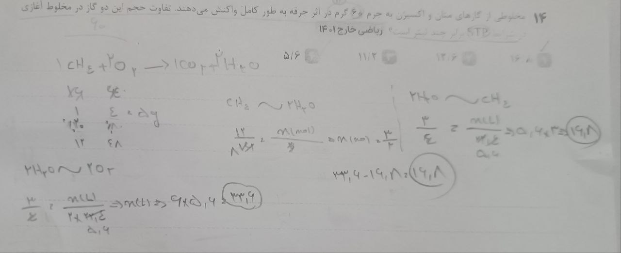 سلام من اومدم جرم متان رو با مول آب کسر تبدیل بستم و مول آب رو بدست آوردم و بعد مول آب رو با حجم متان و اکسیژن کسر تبدیل بستم و همین اعداد رو بدست آوردم به نظرتون این روش هم درسته
