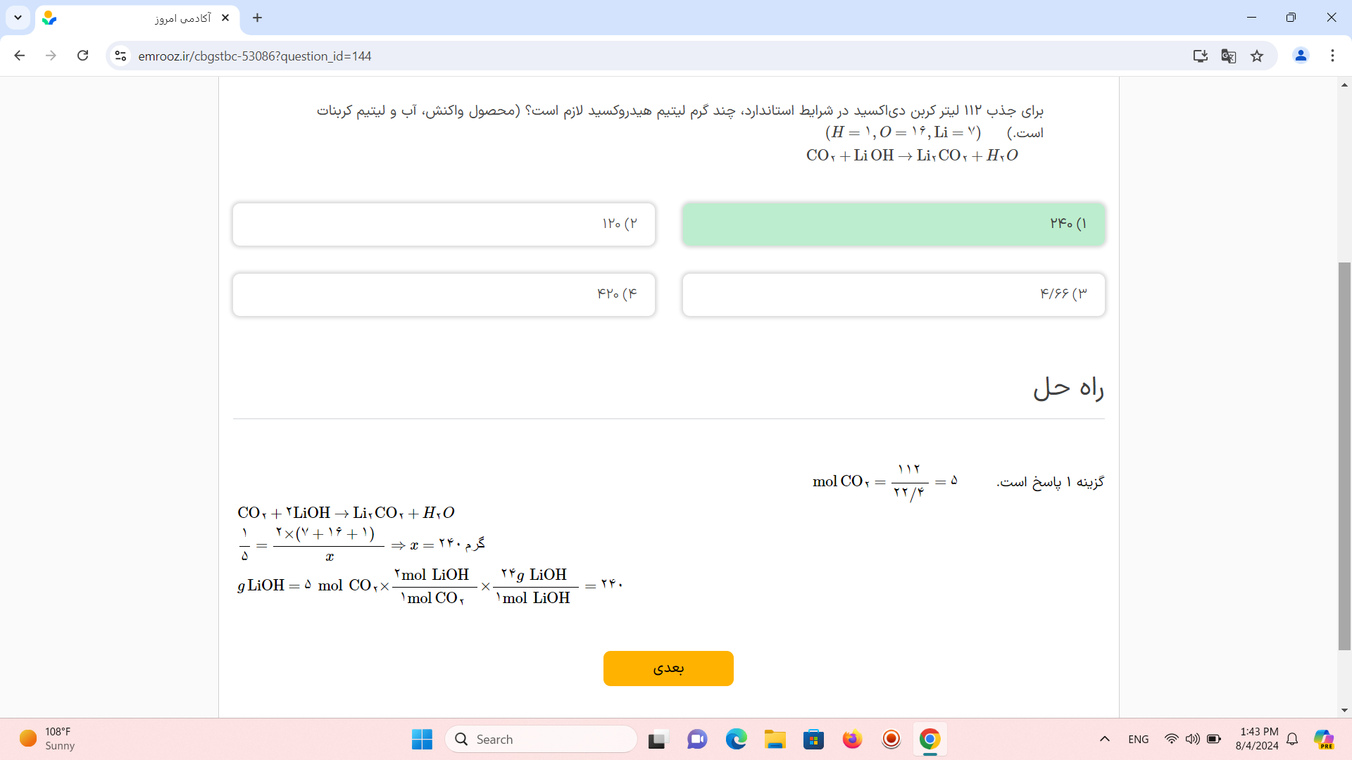 @زینب مقدم خب اگه اکسیژن را از کنار هیدروژن برداریم که کلاً سوالو به هم ریختیم چون خود سوال گفته محصول واکنش آب و لیتیم کربنات یعنی H2Oداره بعد ما چطوری می‌تونیم وقتی خود سوال گفته آب داره چطوری می‌تونیم اونو حذف کنیم