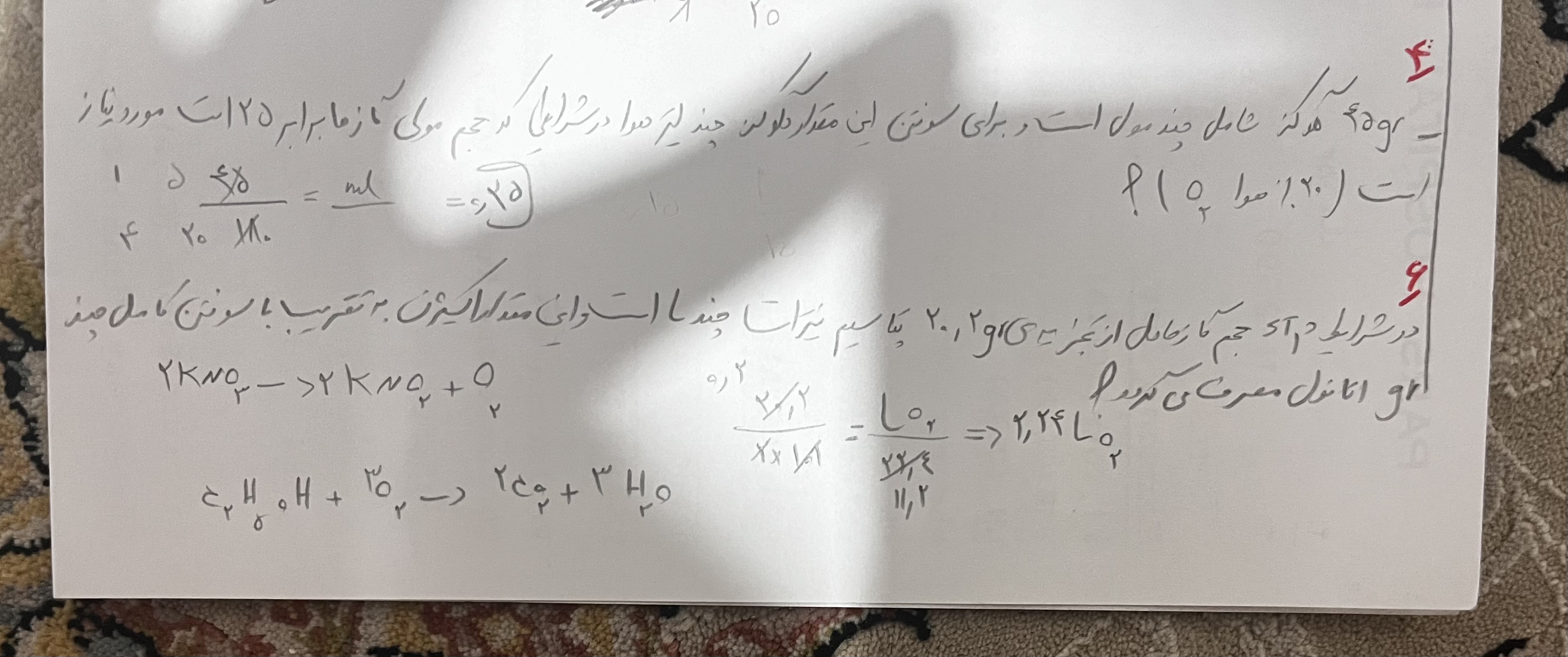 دوستان کسی تمرین شماره ۴ قسمت ۲ رو بلده؟ چرا با استفاده از مولی که از قسمت ۲ بدست میاریم لیتر کل هوا رو بدست نمیاریم