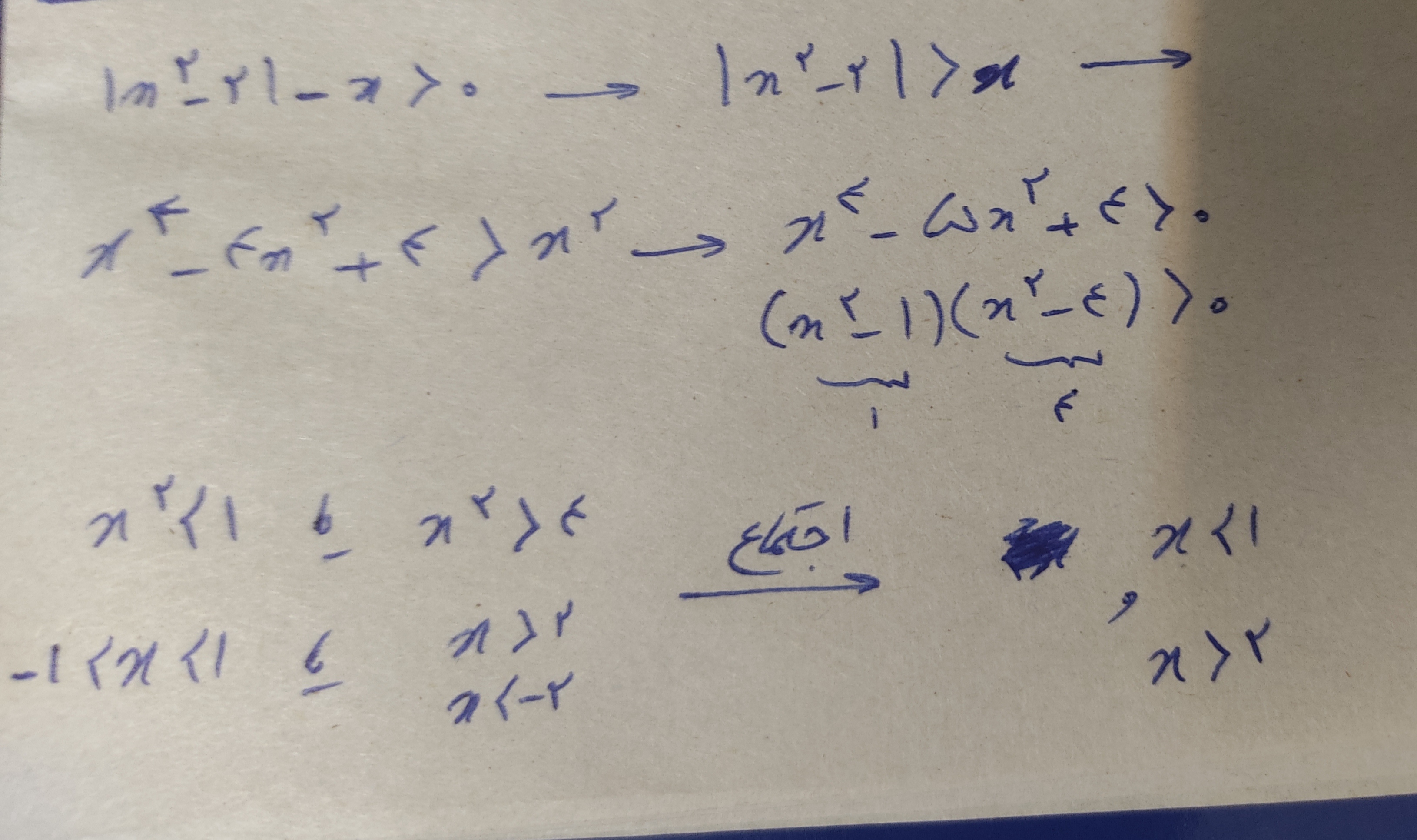 سلام در اون صورت باید نامعادله ای که توی زمان ۱:۰۸ هست رو ساده کنین تا بتونین مقادیرش رو بدست بیارین حلش رو برات میفرستم