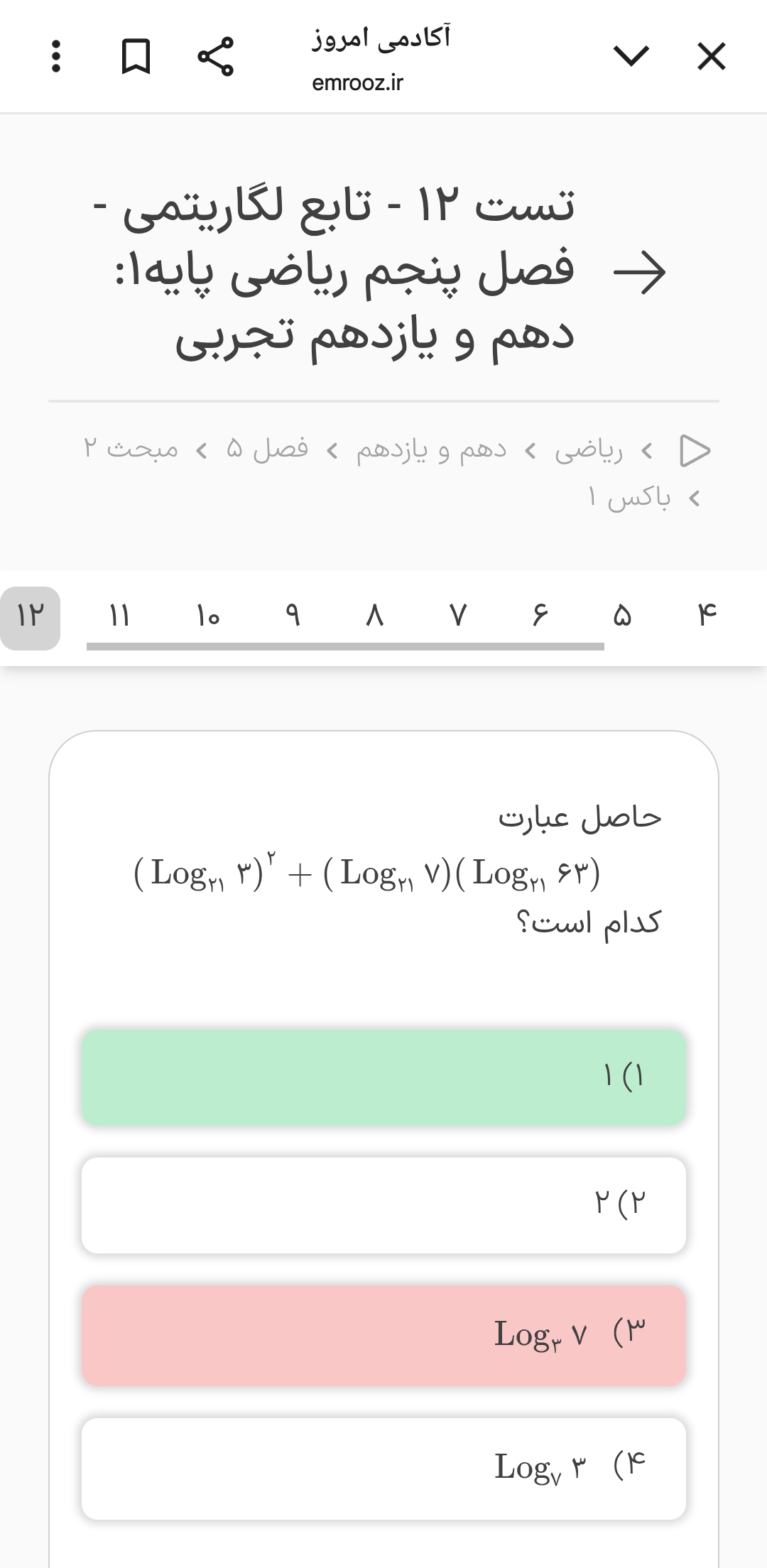 چرا اینجا باید اتحاد لگاریتم ها ۱ بشه؟