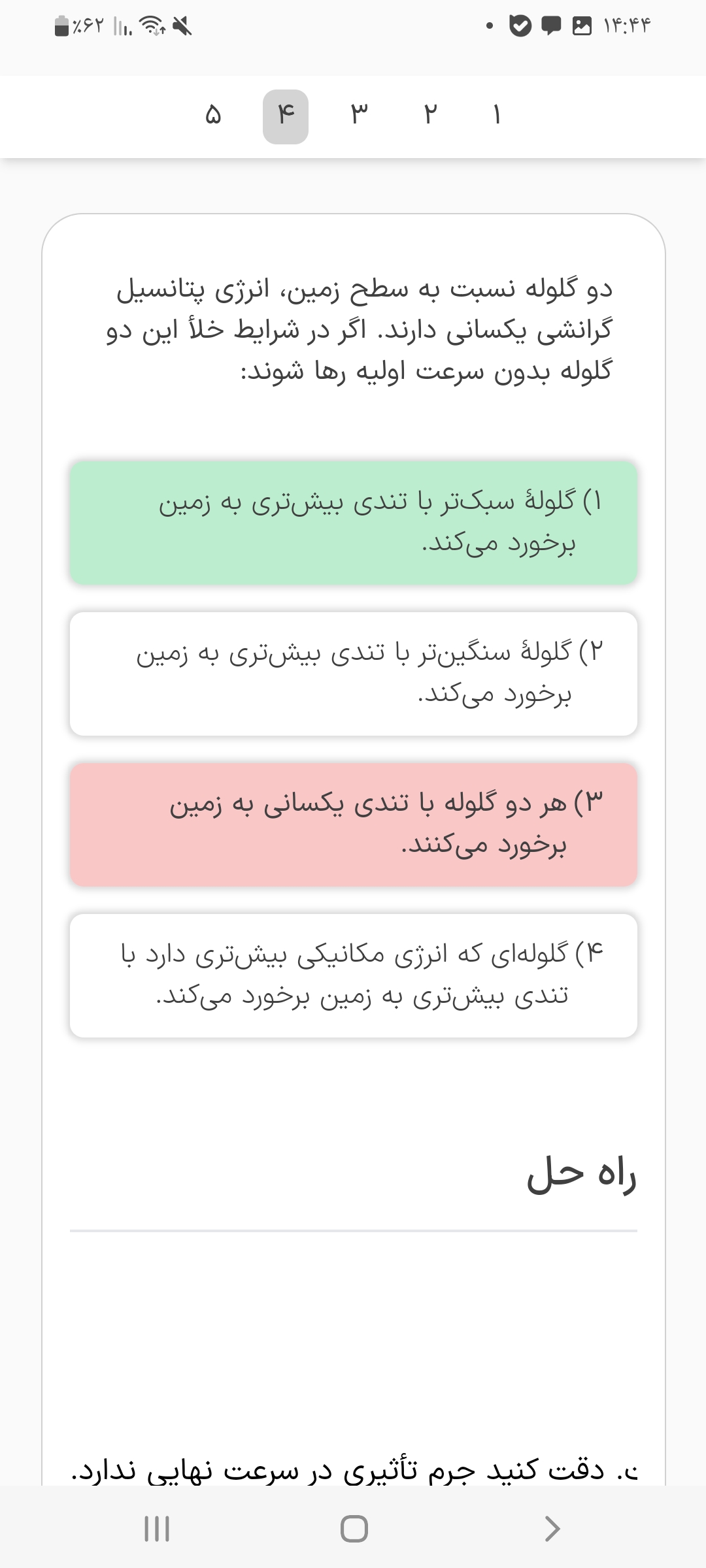 سلام خسته نباشید چرا این سوال رو اگه با اون فرمولی ک برای سرعت برخورد بود و رادیکالی بود(امیدوارم منظورمو متوجه شده باشین😄) حل کنیم و hرو مجهول بذاریم توی اون فرمول ،نمیتونیم به جواب برسیم؟