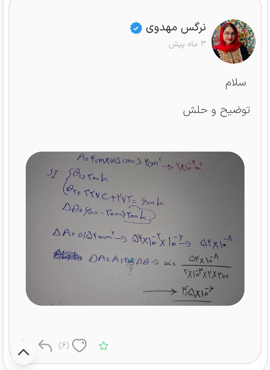 عرض ادب؛ نیازی به تبدیل به واحد SI نیست! باید ببینین خواسته سوال برحسب چیه، اگه خواسته سوال برای مثال باشه میلی متر مربع باید یا دلتا A رو یا A یک رو به خواسته سوال تبدیل کنید. مثلا در سوال چی یاد گرفتی دلتا A رو برحسب میلی متر مربع داده باید A یک رو هم از 2 سانتی متر مربع به 200 میلی متر مربع تبدیل کنید و در فرمول جایگذاری کنید.