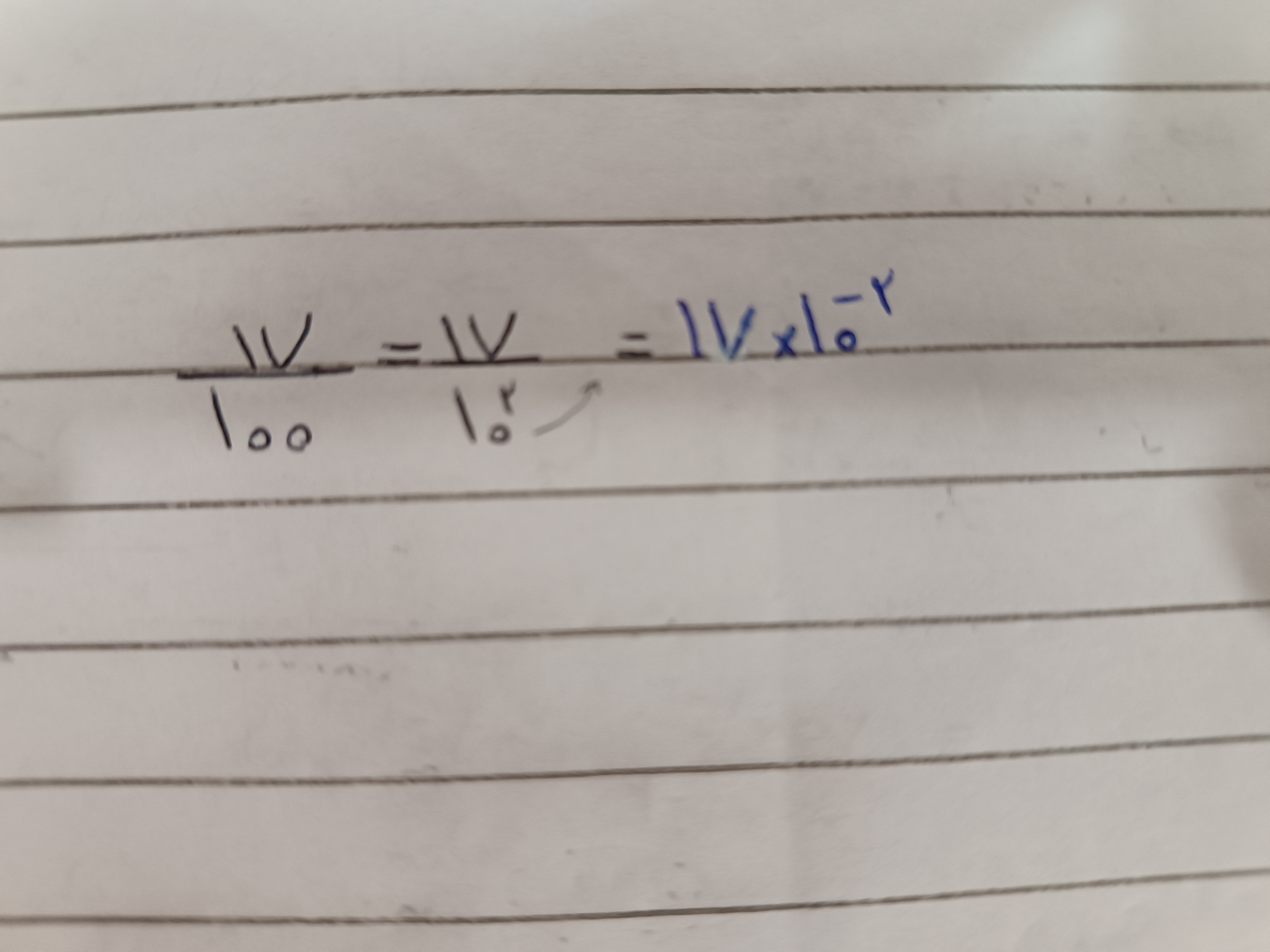 سلام دوست عزیزم . ده به توان دو در مخرج است و وقتی به صورت بیاید علما توانش تغییر میکند و میشود ده به توان منفی دو