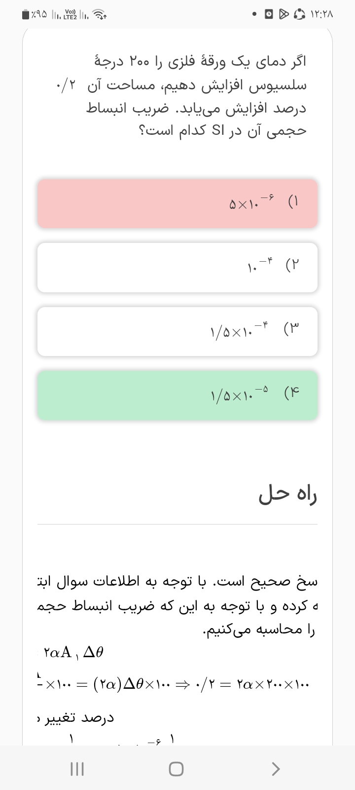 ببخشید مگه اینجا نگفته ضریب انبساط طولی مگه نباید بگیم آلفا ضرب در دلتا تتا ضرب در صد