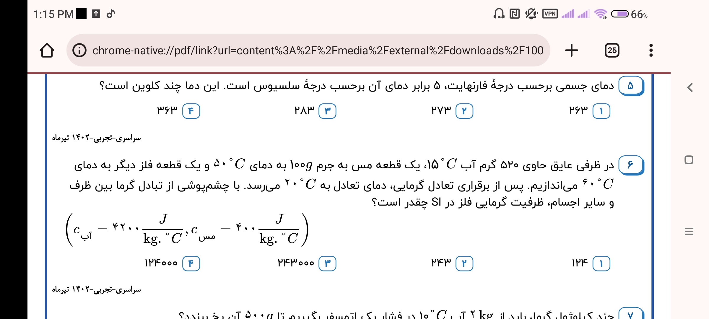 یادبگیریم2:تعادل گرمایی(با تغییر حالت و دمای تعادل)
