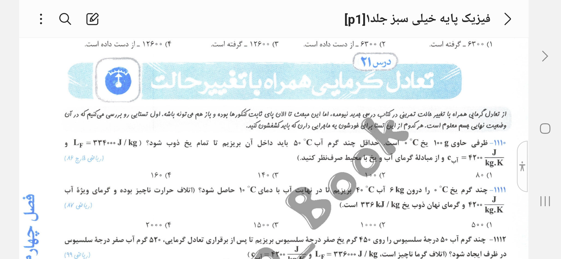 @Maedeh karami وقتی گفته چقدر آب بیست درجه لازمه تا تمام یخ ذوب شود. یعنی دمای تعادل آب صفر درجست